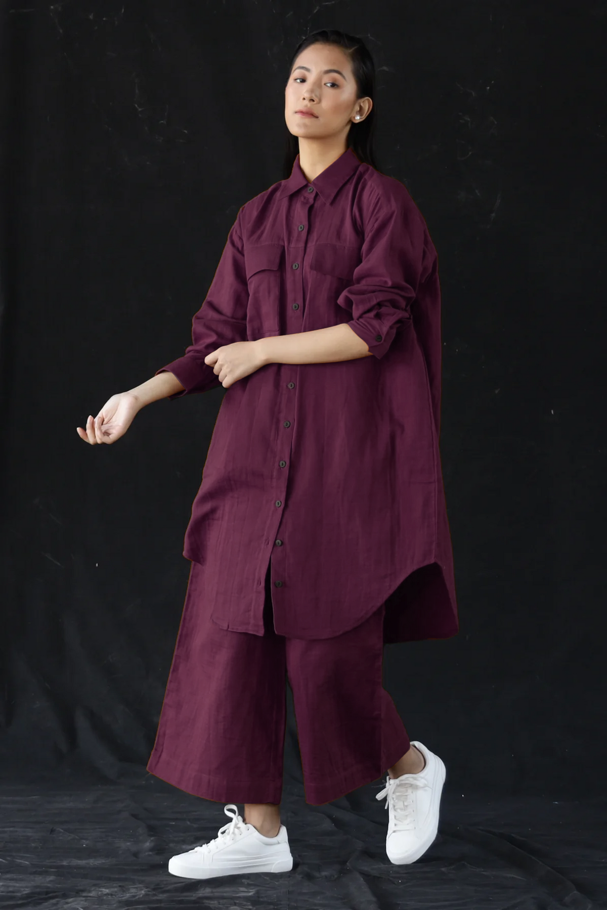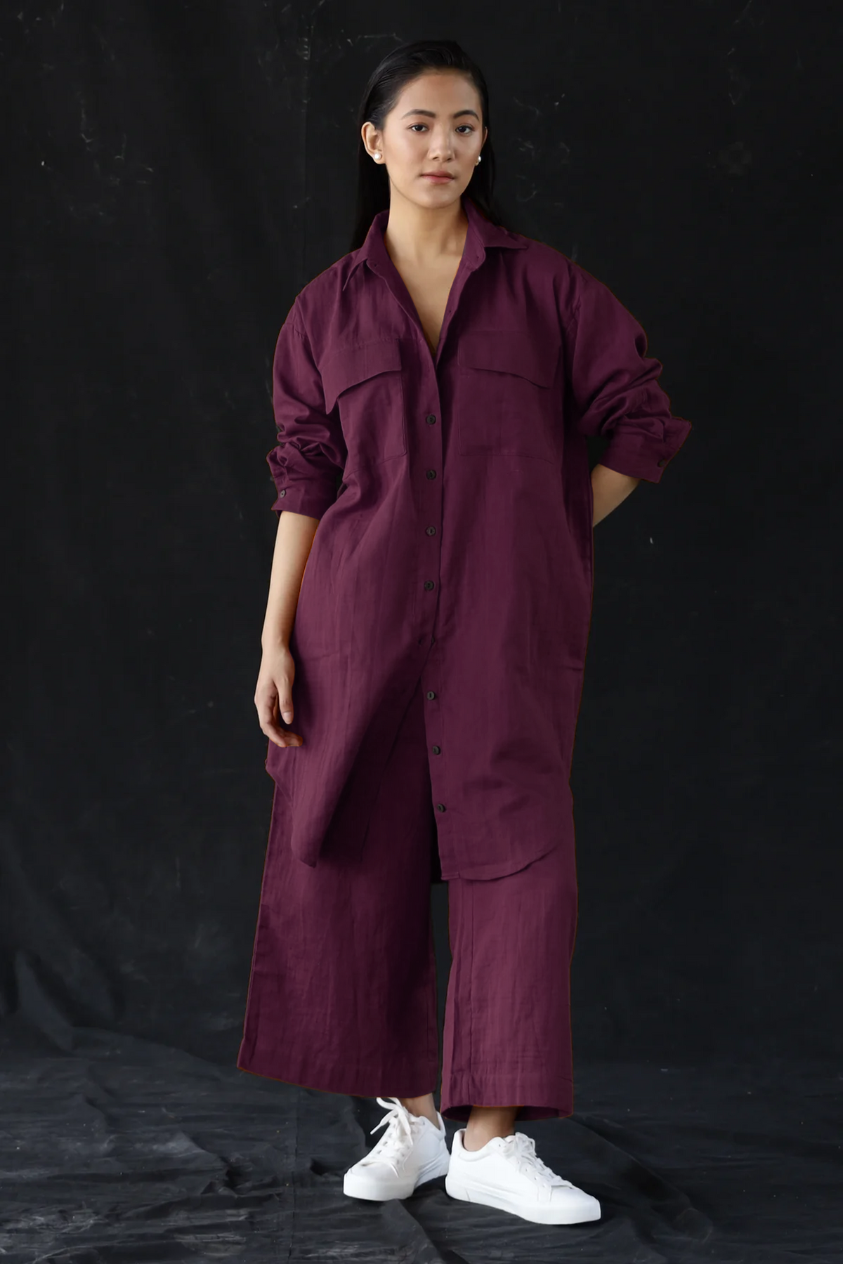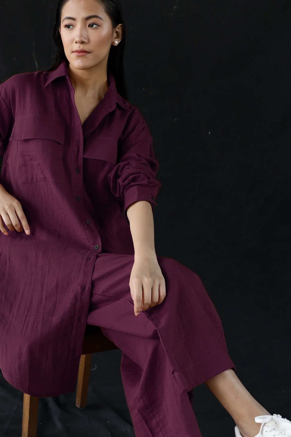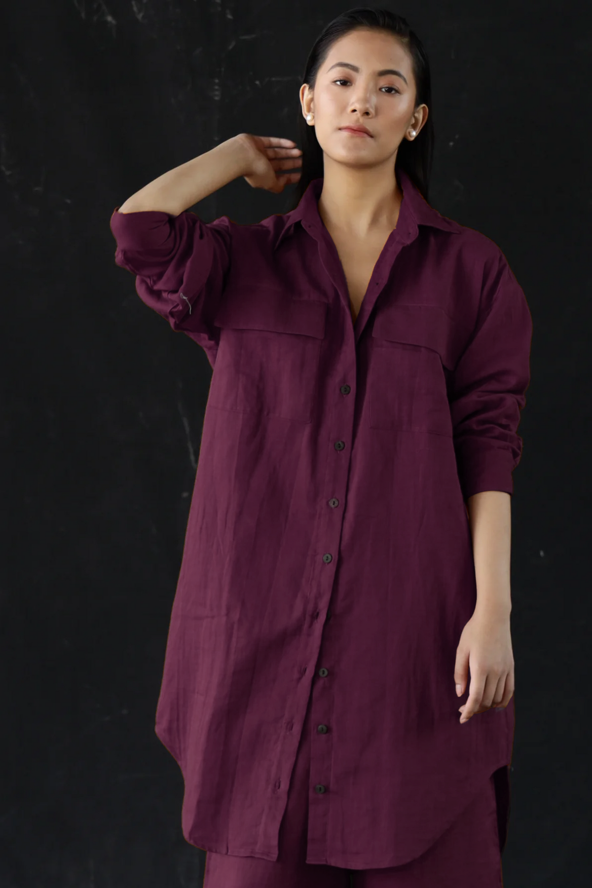 Your out-of-office uniform, even when you're not. This oversized shirt-and-pants set in Merlot is breathable, brunch-ready, and blissfully pocketed. Button it up, roll the sleeves, or leave it loose—it plays nice with every version of you. Structured enough to look sharp, soft enough to live in.