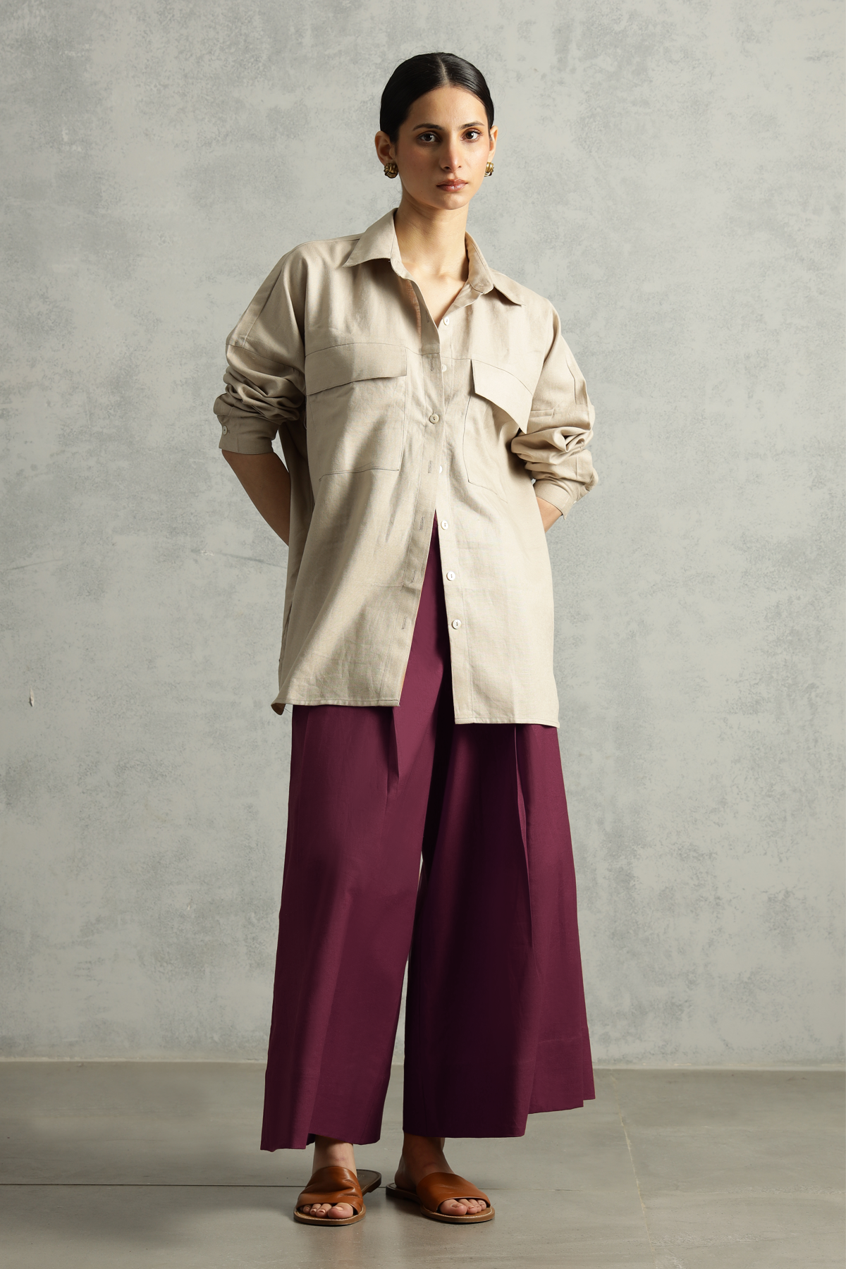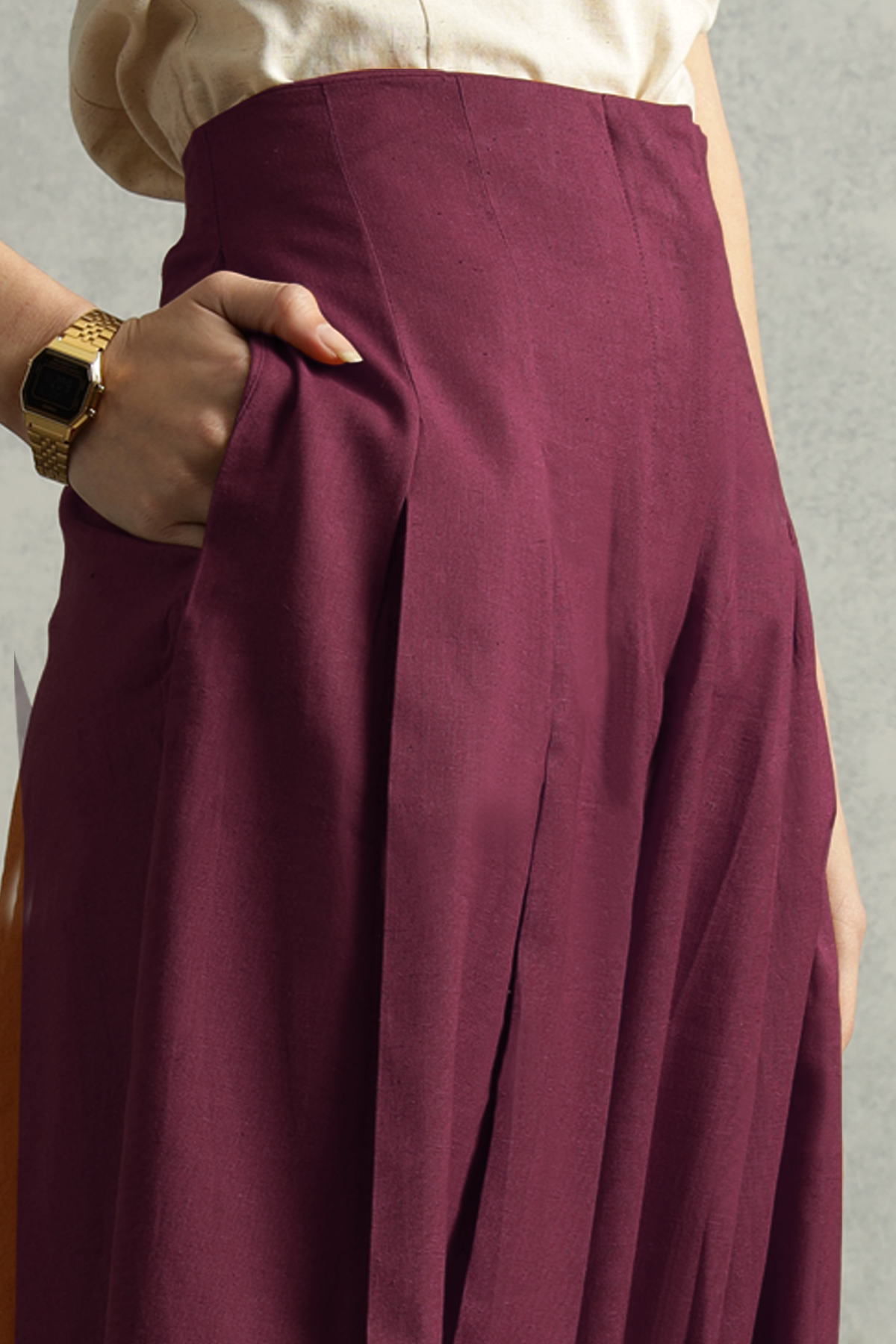 Your merlot-pant era starts here. These wide-leg pleated trousers flow like a skirt but mean business. High-waist? Check. Side pockets? Obviously. They’re crisp, clean, and cut to impress—whether you're running errands or running meetings. Dress them up or down, just don’t be surprised when compliments follow.