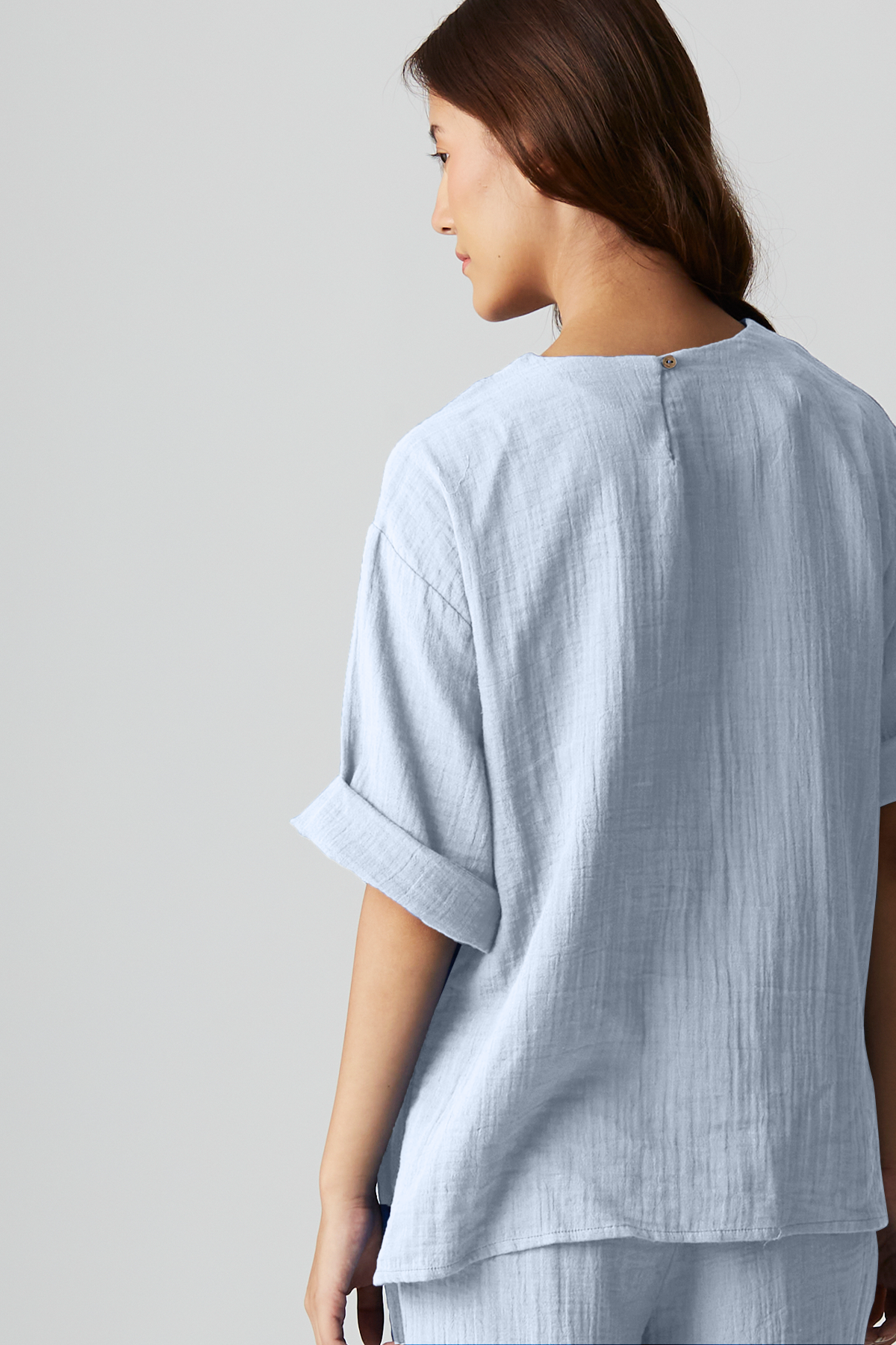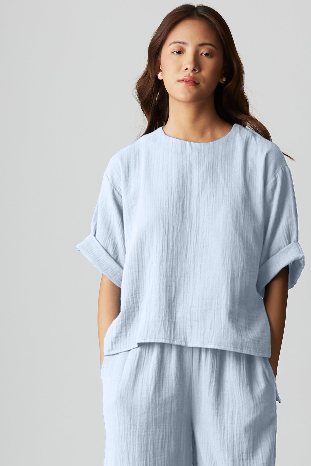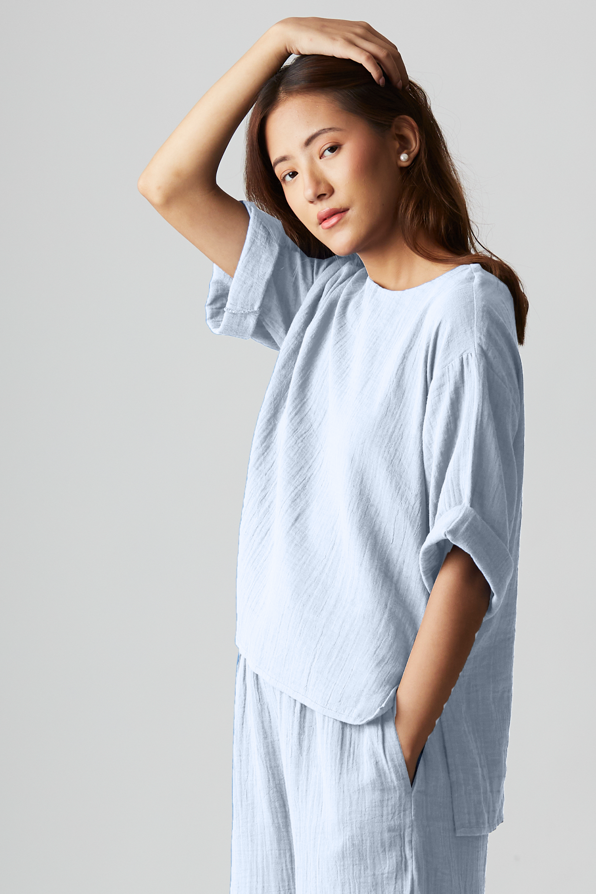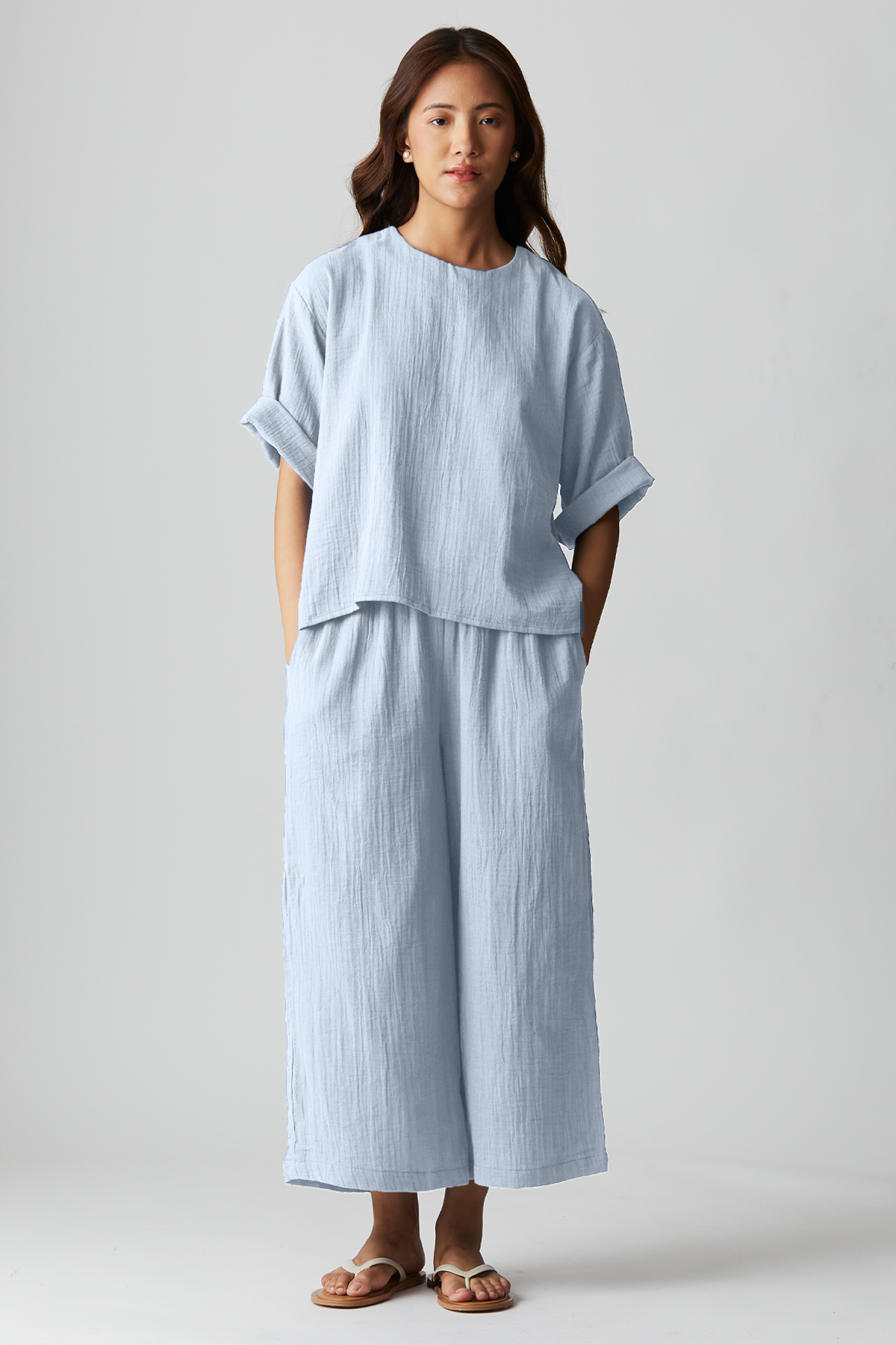 When your calendar says “busy” but your vibe says “vacay.” This co-ord set serves relaxed polish with a boxy, roll-sleeve top and flowy wide-leg pants. Lightweight, breathable, and unapologetically chic — because looking put-together shouldn’t feel like work.