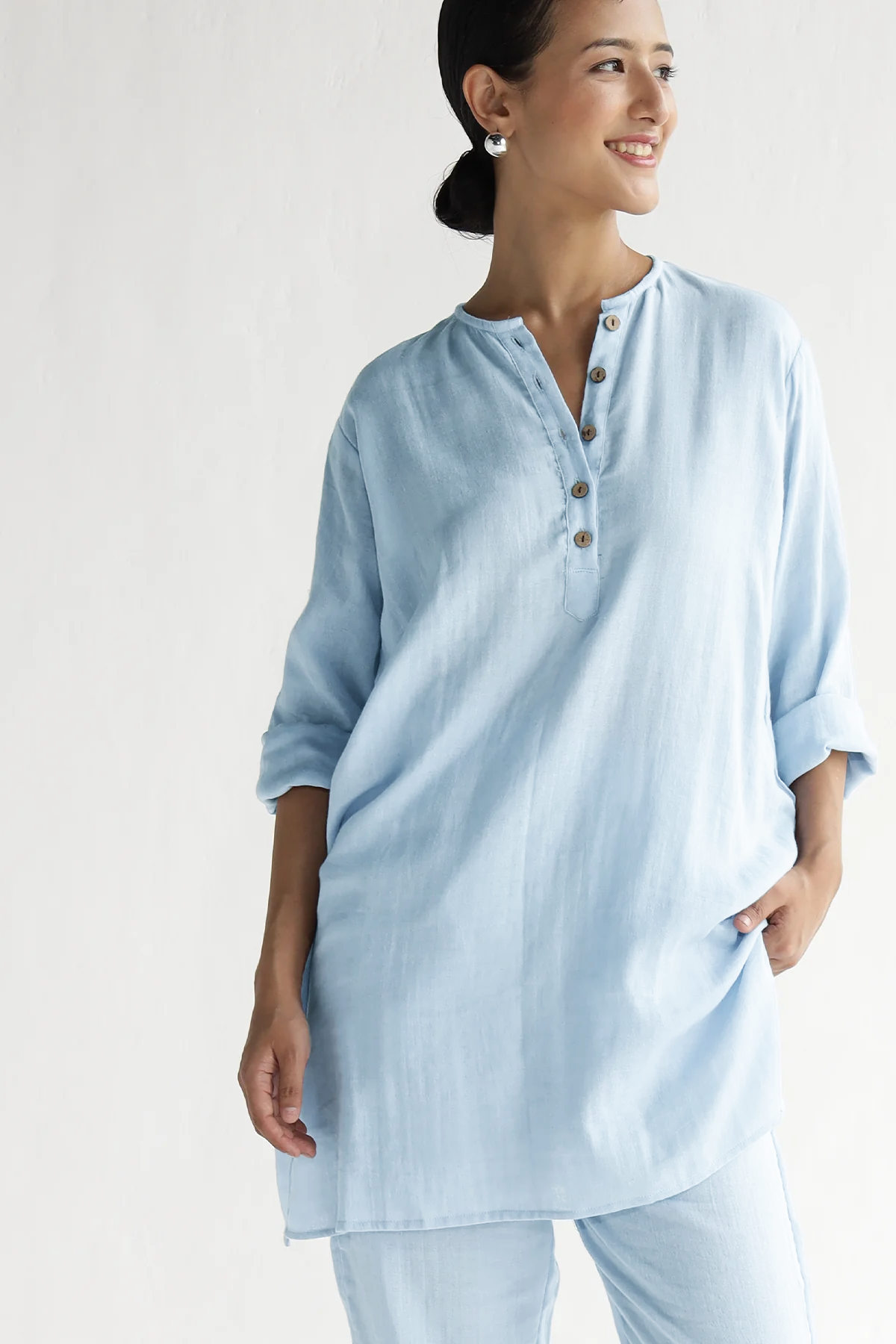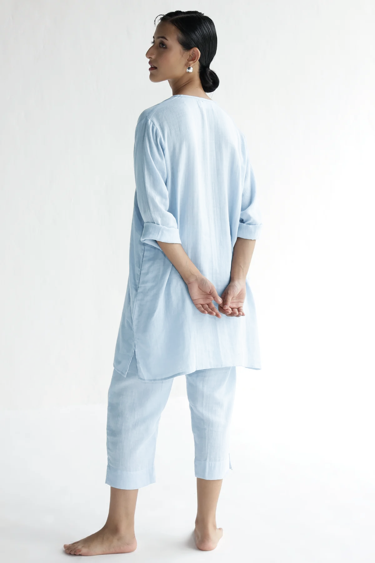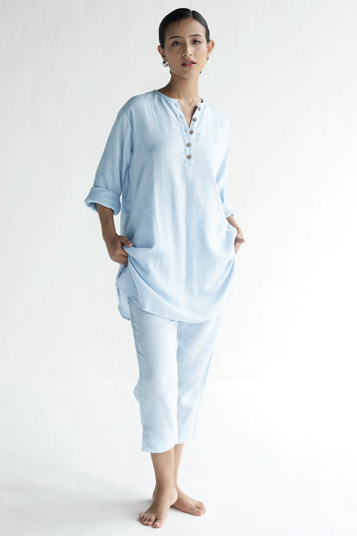This co-ord is basically your OOO mood (Out Of Office) in outfit form. Made from breathable linen in a mood-lifting blue, it’s got rolled sleeves, real pockets, and an attitude that says “I have plans… to chill.” Perfect for errands, inbox-ignoring, or spontaneous long lunches.