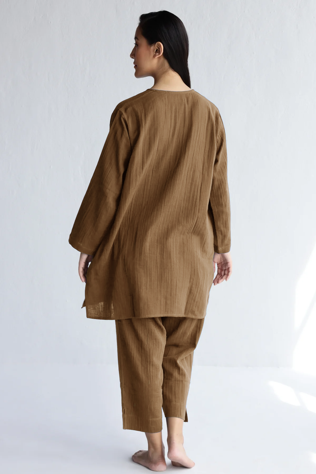 This co-ord is basically your OOO mood (Out Of Office) in outfit form. Made from breathable linen in a mood-lifting blue, it’s got rolled sleeves, real pockets, and an attitude that says “I have plans… to chill.” Perfect for errands, inbox-ignoring, or spontaneous long lunches.