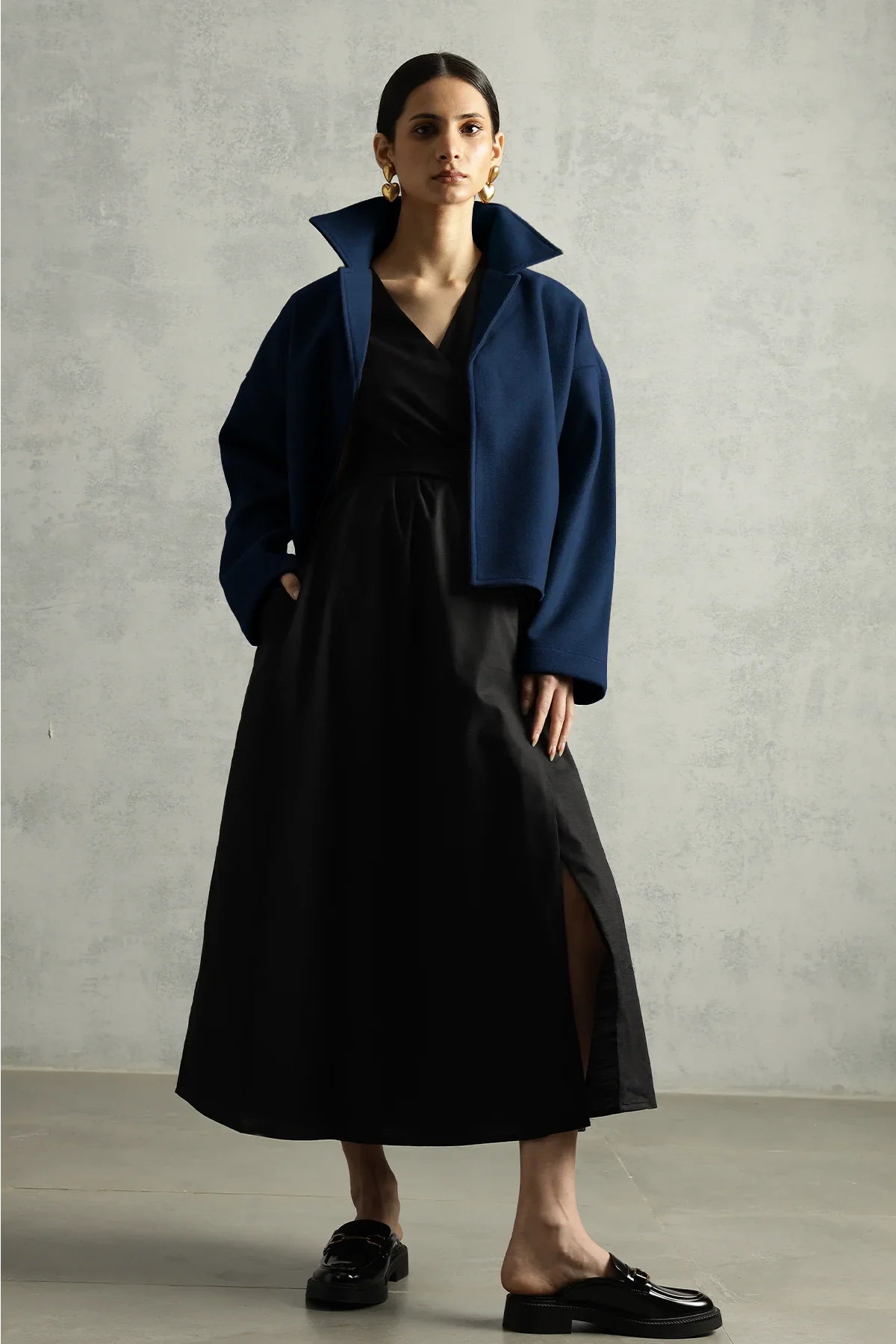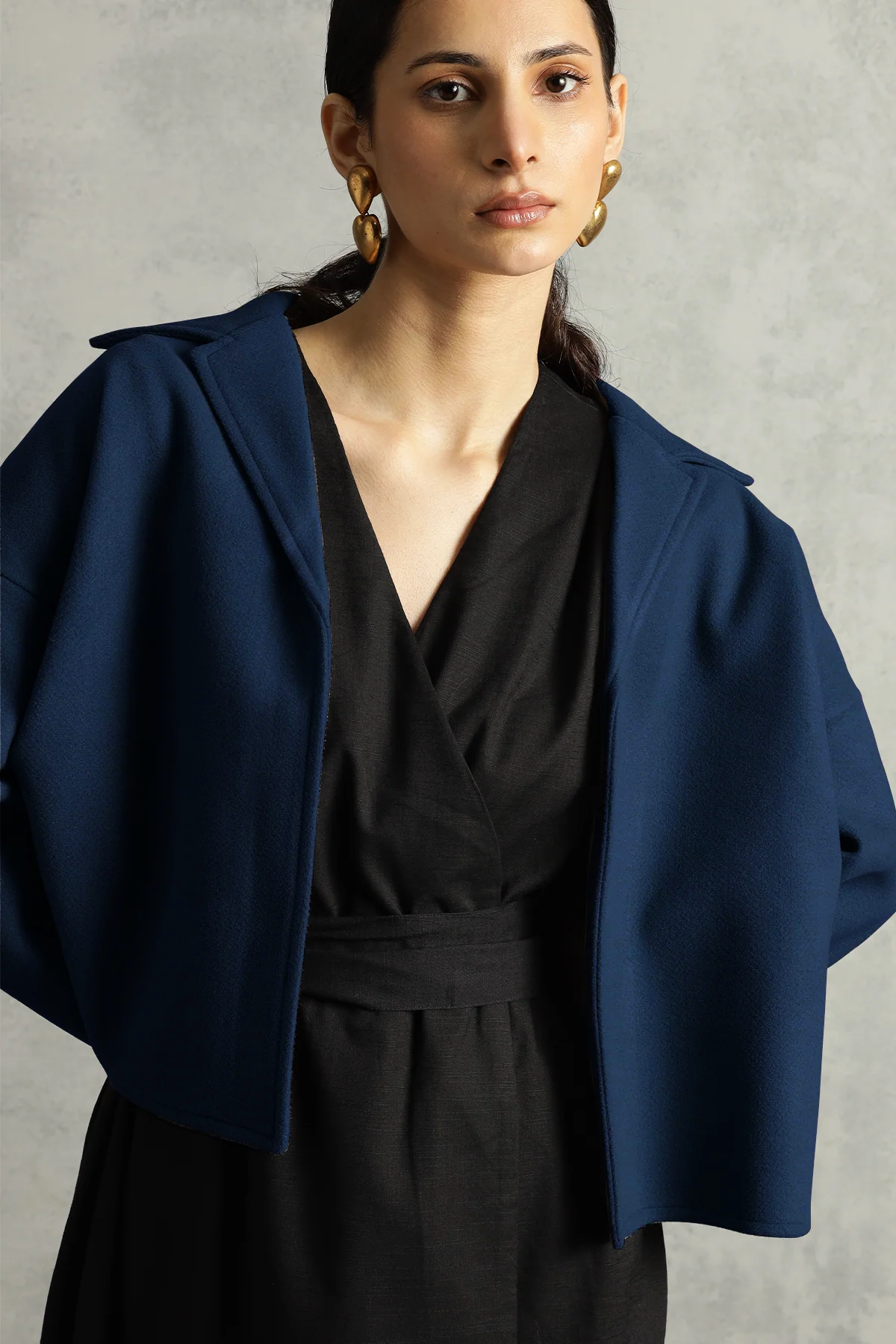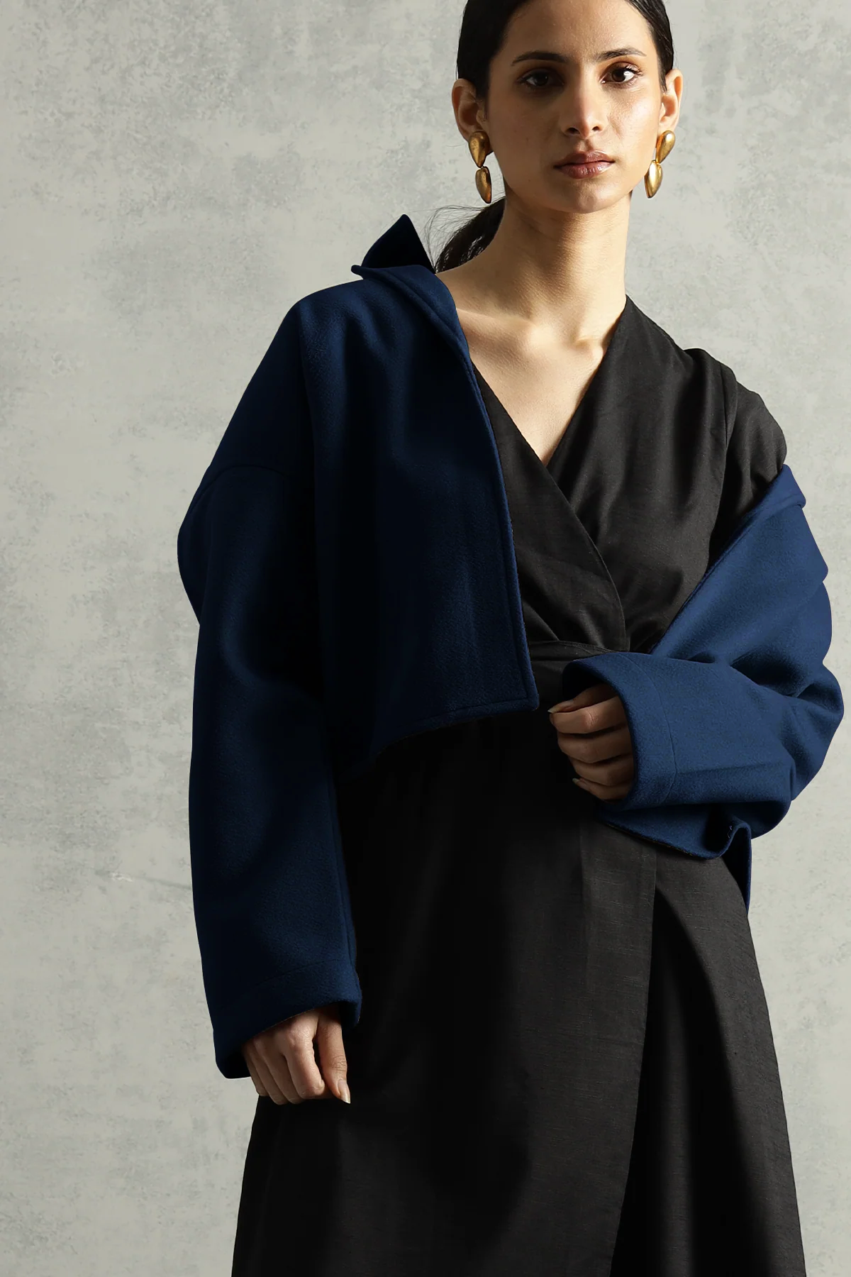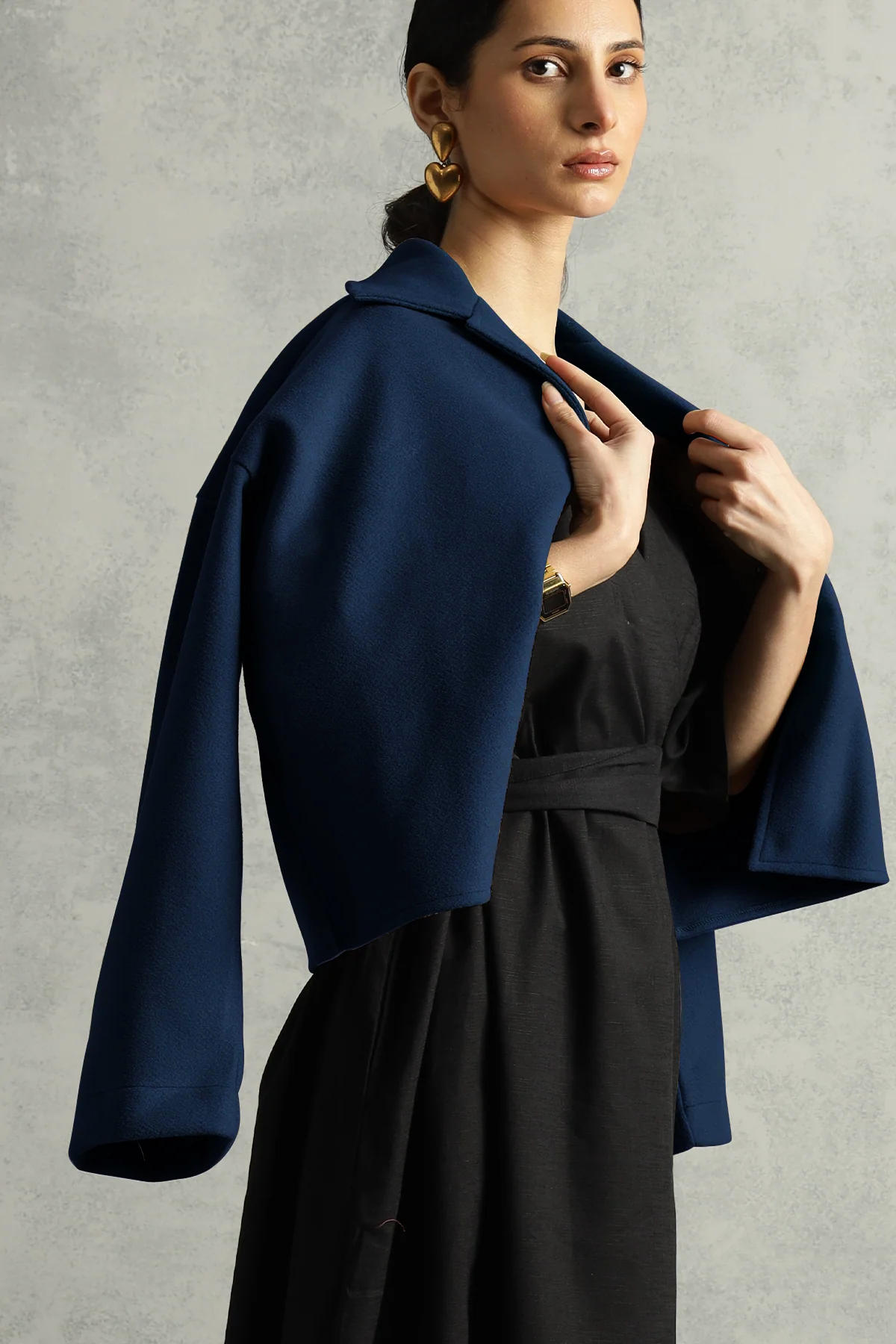 This indigo navy cropped jacket is what happens when structure meets ease. Tailored enough to look put-together, roomy enough to ghost your to-do list. Throw it over anything, flip the collar if you're feeling bold, and glide through the day like the main character you are.