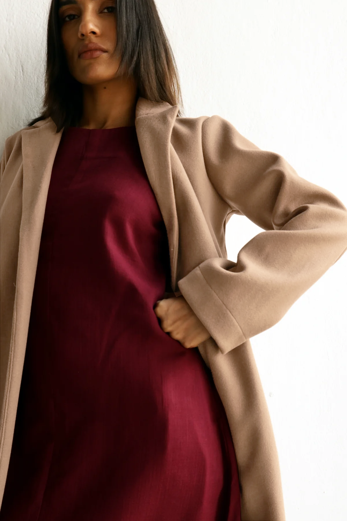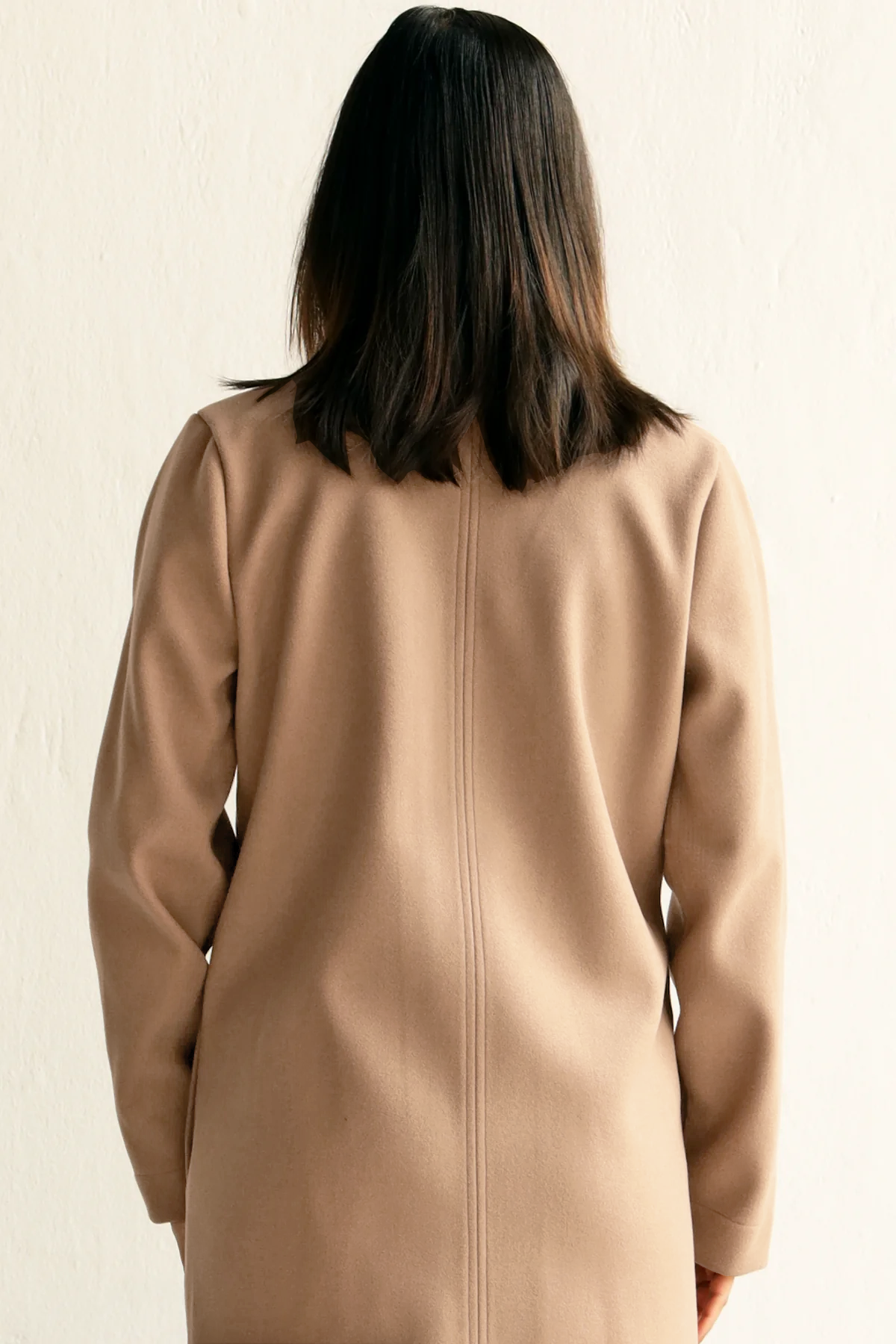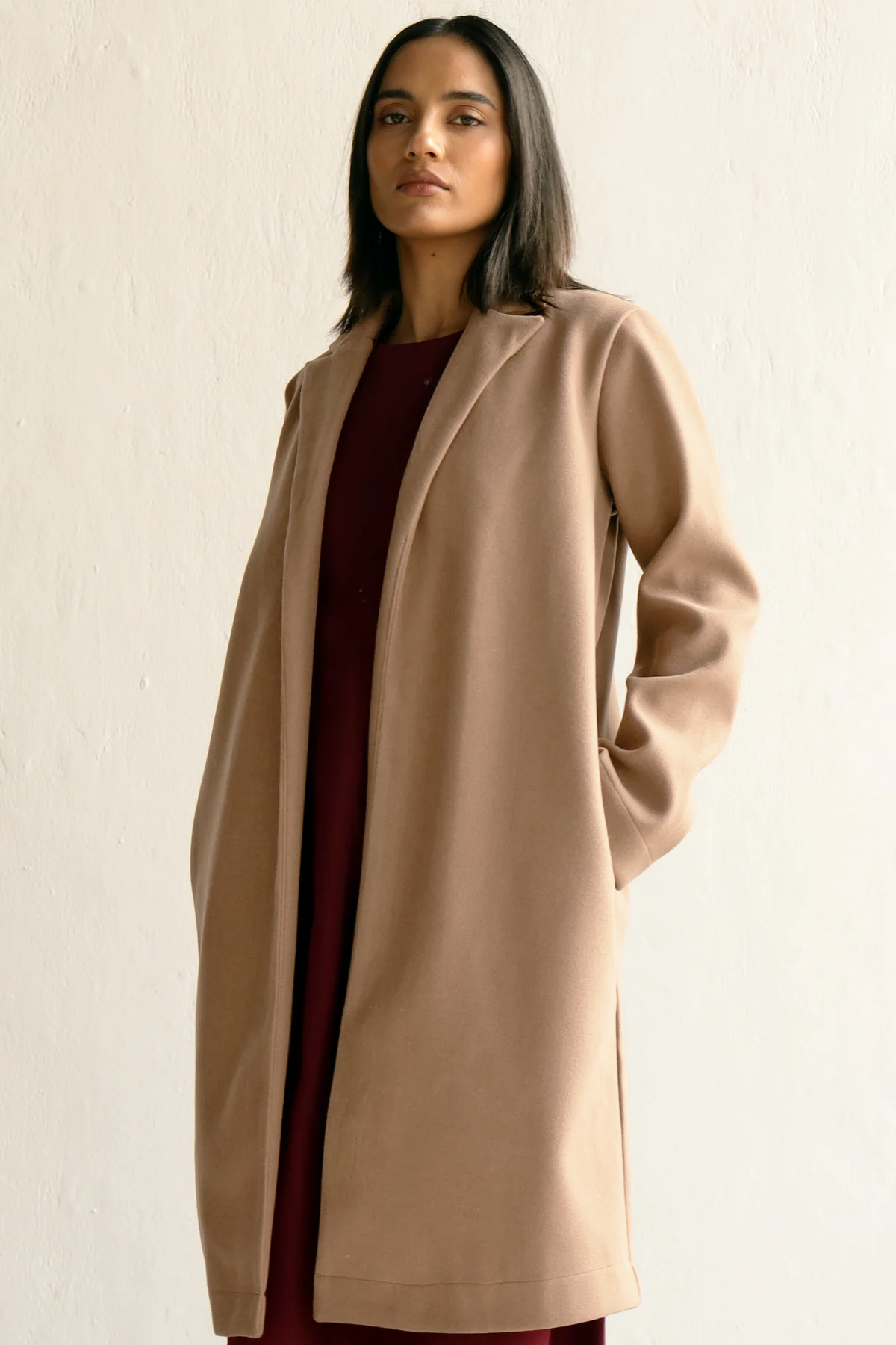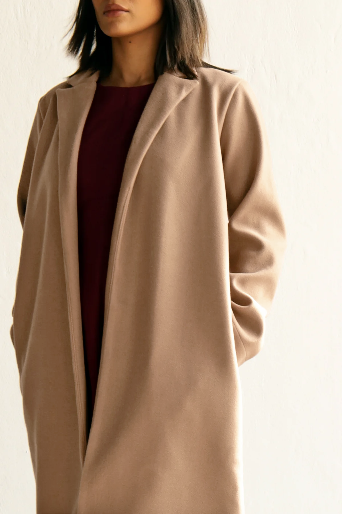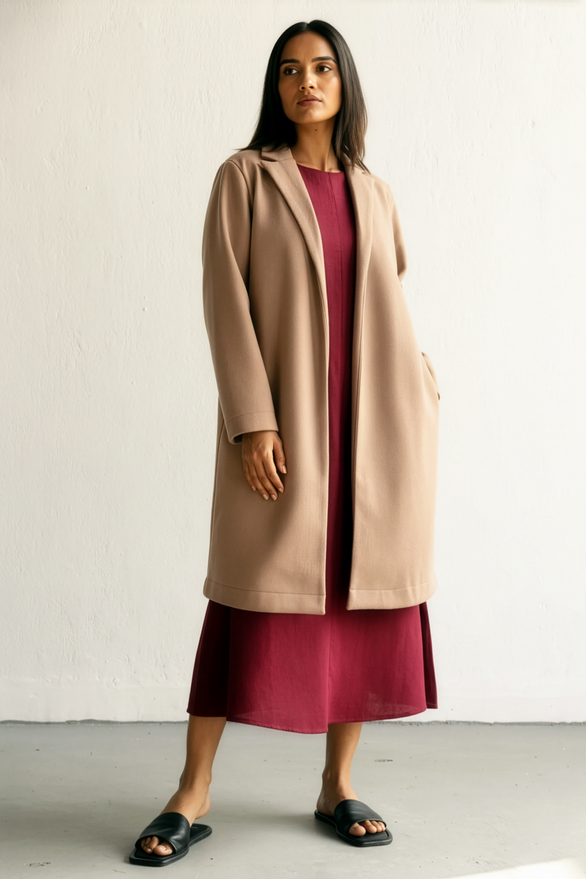Soft structure, zero drama. This sand throw-on-and-go coat adds polish to whatever’s underneath—dresses, denims, even that tee from yesterday. It’s roomy, refined, and unapologetically effortless. Basically, your new cold-weather plus one.