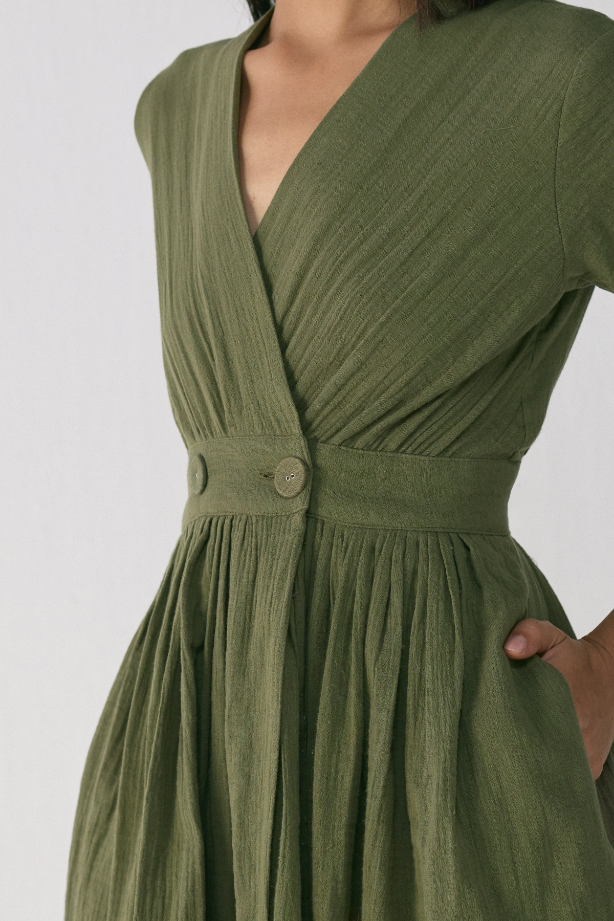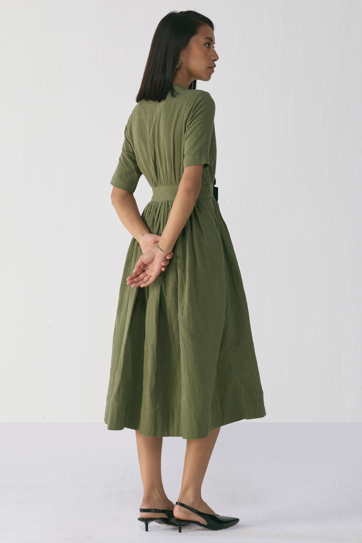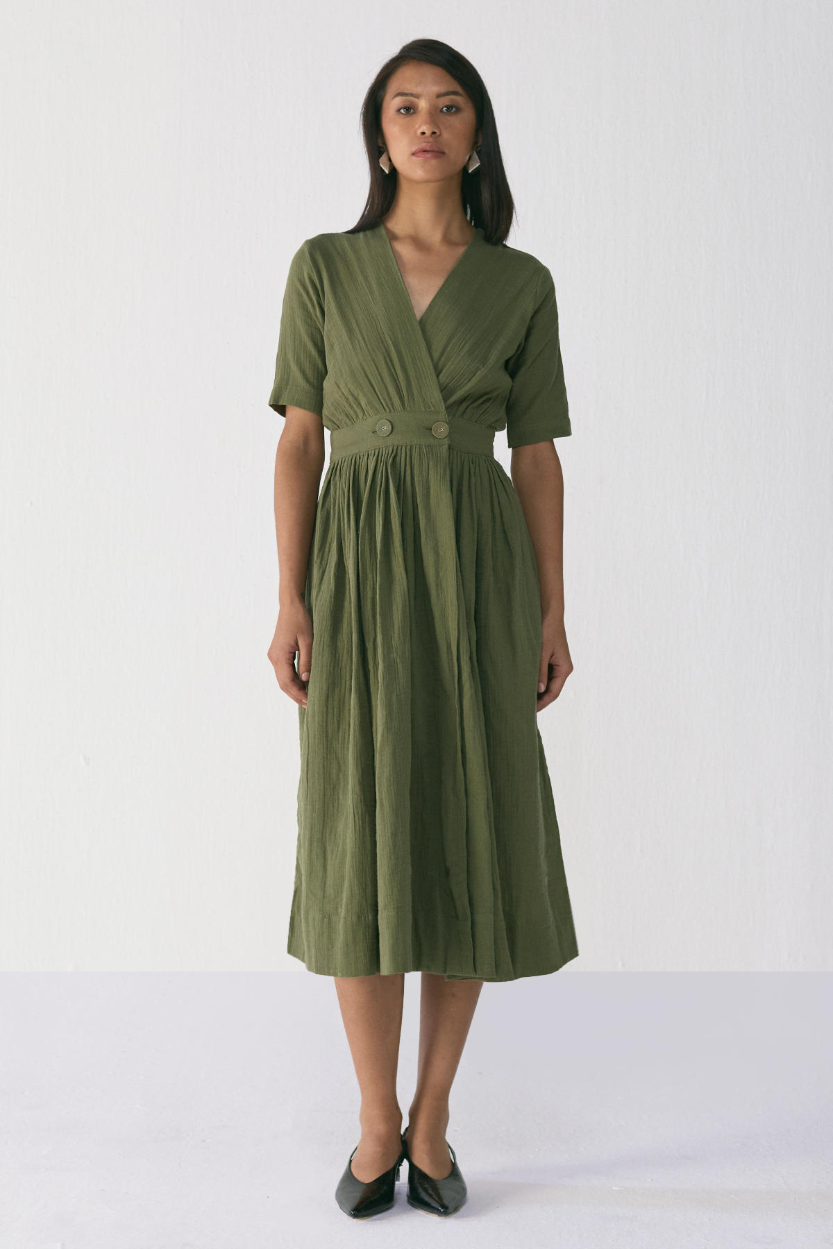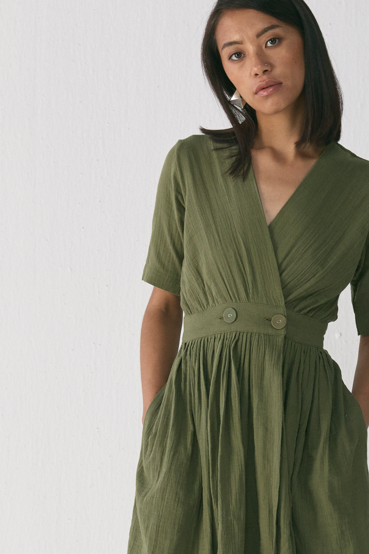 Soft, swishy, and unapologetically feminine. This basil gauze midi flows like a daydream, with pleats that flatter and a waist that knows what it’s doing. Lightweight but luxe, this one’s made for those “just one more twirl” moments. Also: pockets.