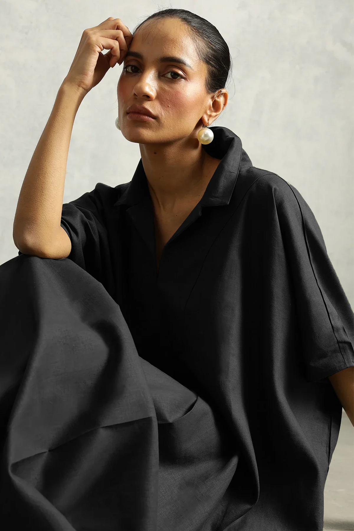 You could live in this one. Effortless drape, clever pleats, and that black hue—this kaftan means business (and brunch, and late-night wine). Roomy, but make it tailored. Wear it belted or let it flow—either way, it’s drama-free dressing at its finest.