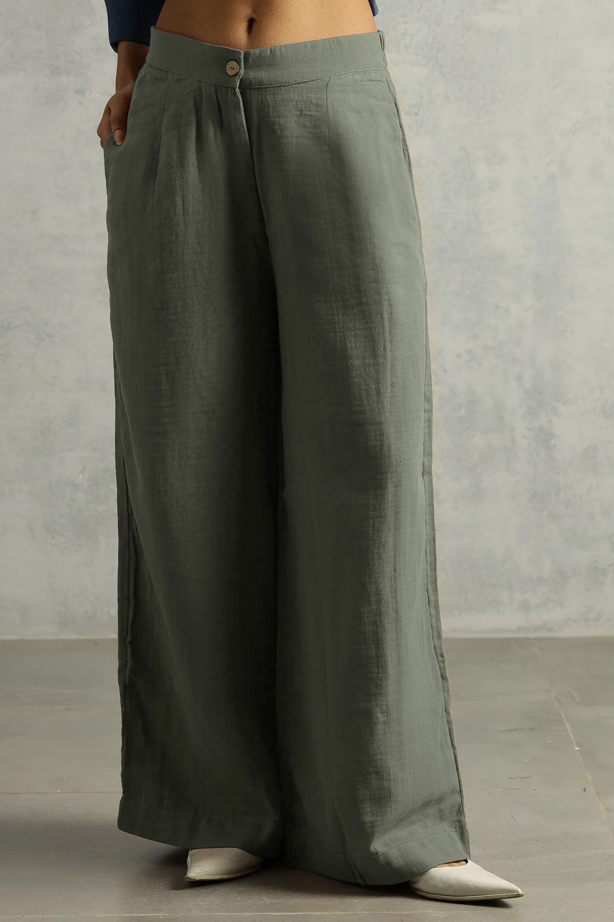 Breezy, bold, and built for movement—these high-rise sage pants give drama with none of the fuss. Featuring a flattering pleat, elasticated back, and real pockets (yes, finally), they’re your go-to for slow days, quick errands, or absolutely nothing at all. Pair with literally everything.