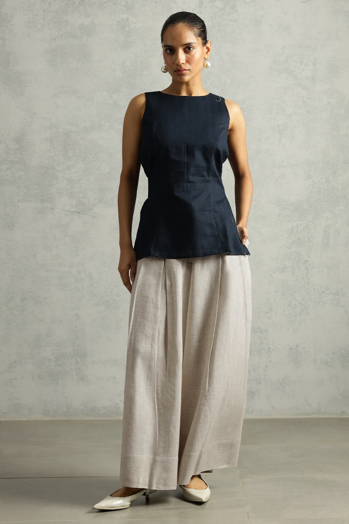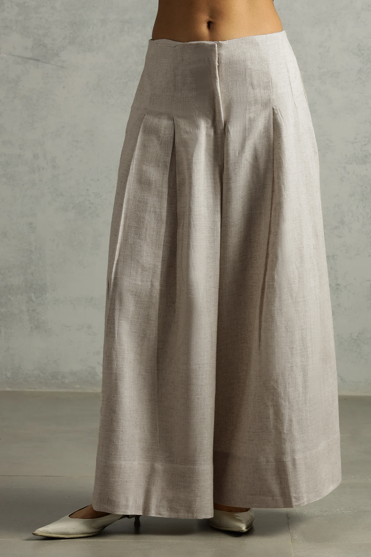 Your natural-pant era starts here. These wide-leg pleated trousers flow like a skirt but mean business. High-waist? Check. Side pockets? Obviously. They’re crisp, clean, and cut to impress—whether you're running errands or running meetings. Dress them up or down, just don’t be surprised when compliments follow.
