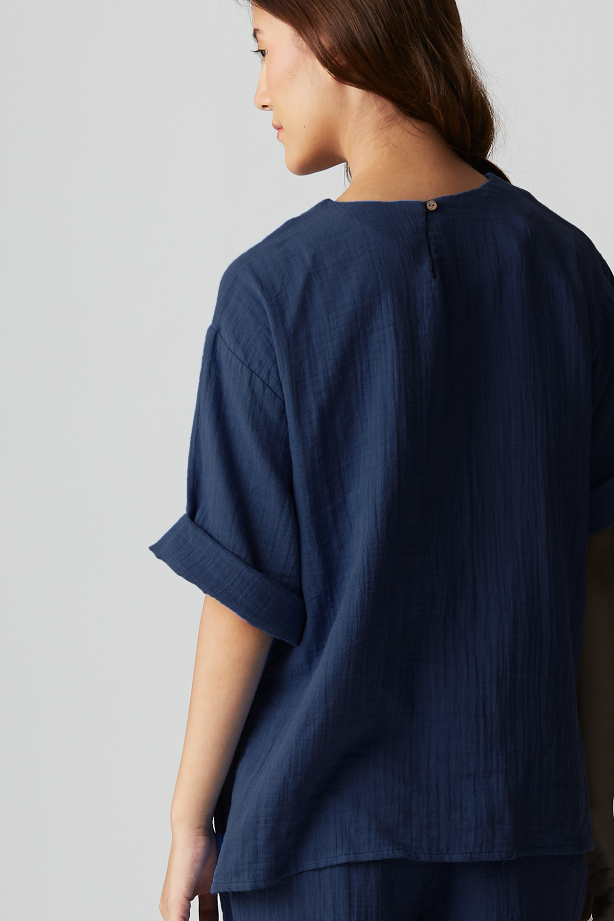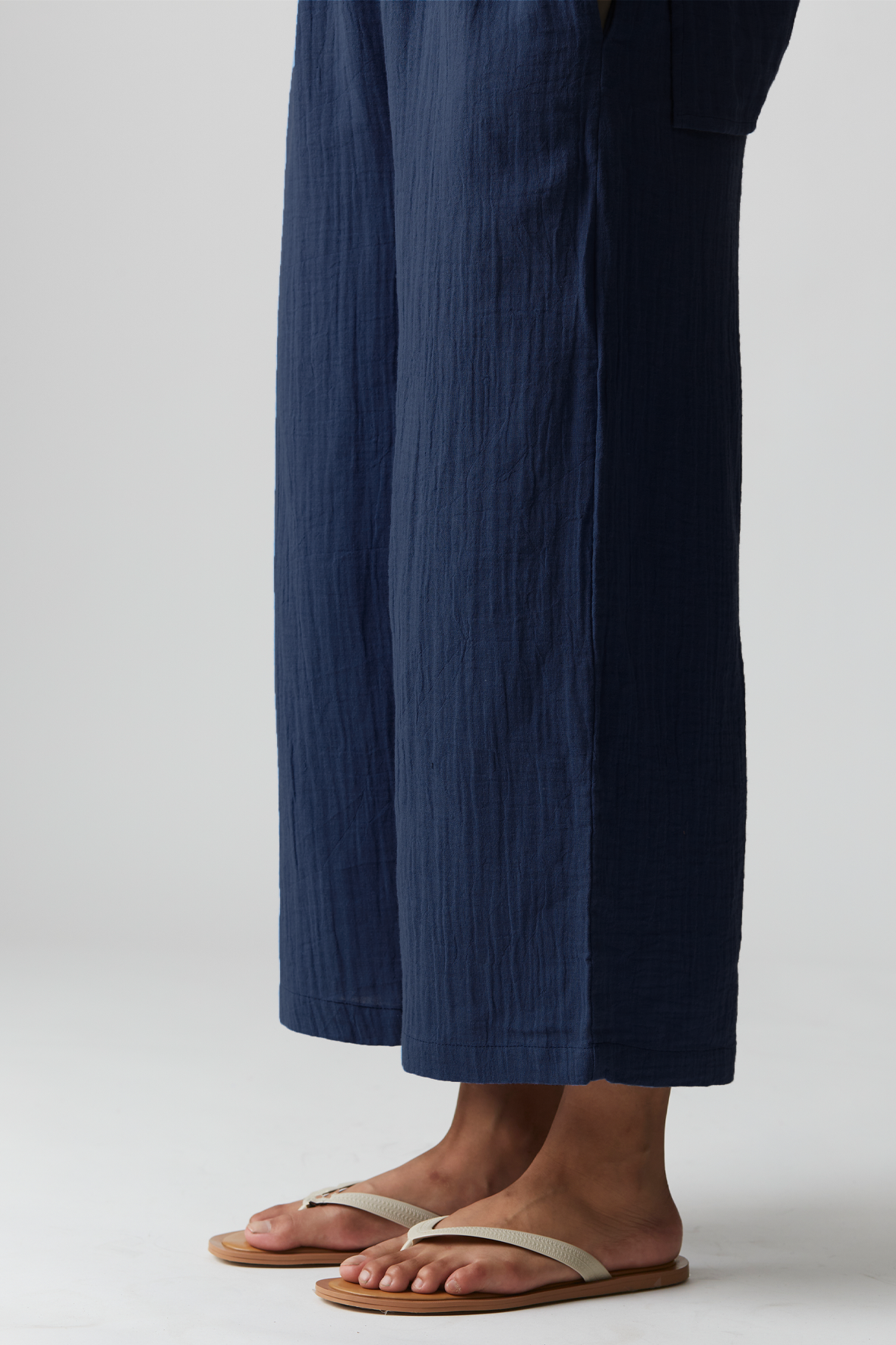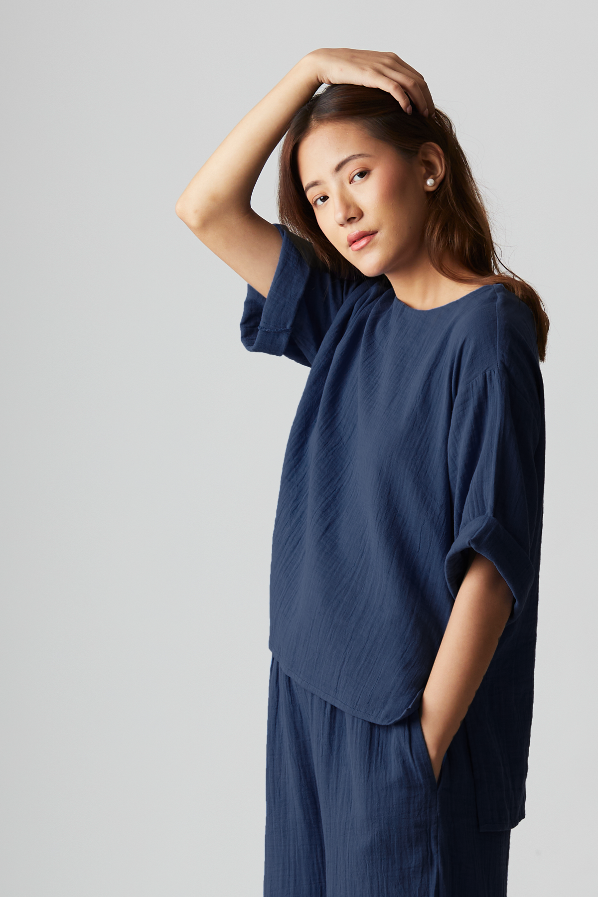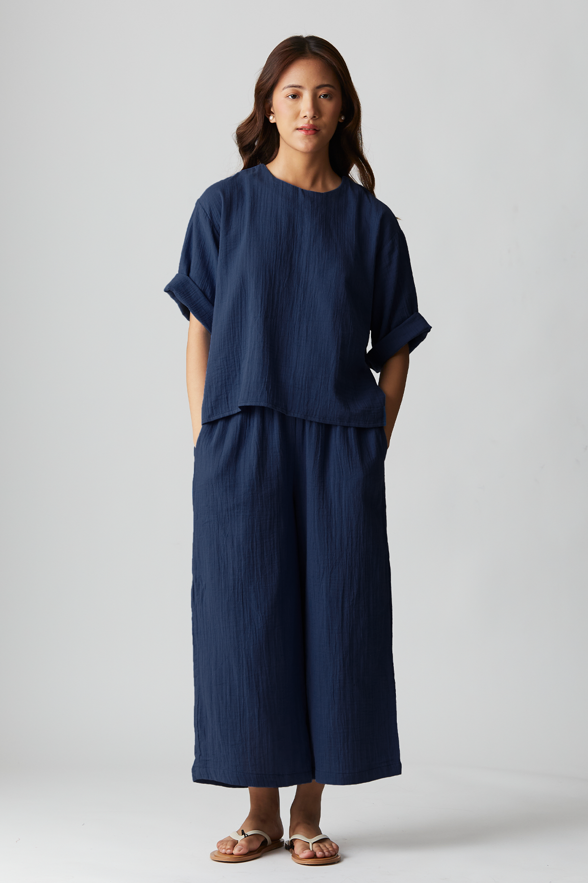 When your calendar says “busy” but your vibe says “vacay.” This co-ord set serves relaxed polish with a boxy, roll-sleeve top and flowy wide-leg pants. Lightweight, breathable, and unapologetically chic — because looking put-together shouldn’t feel like work.
