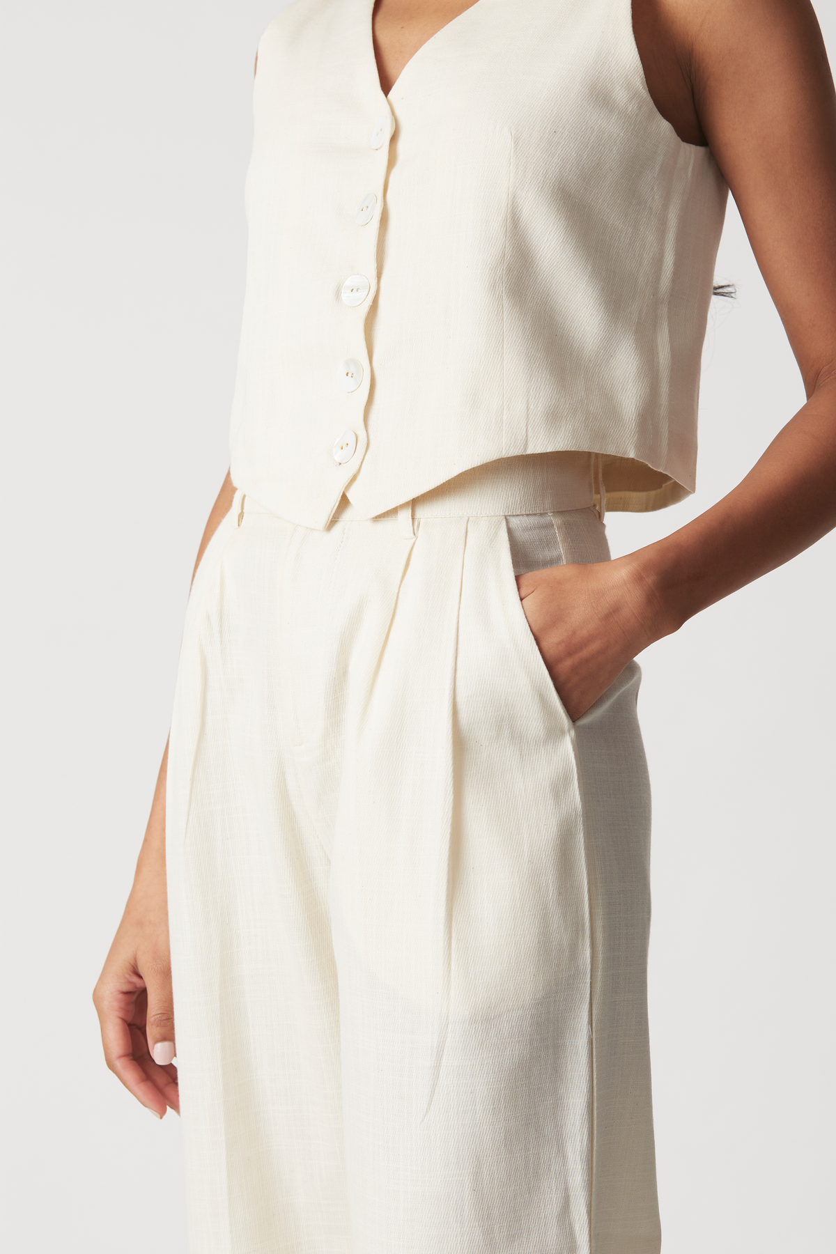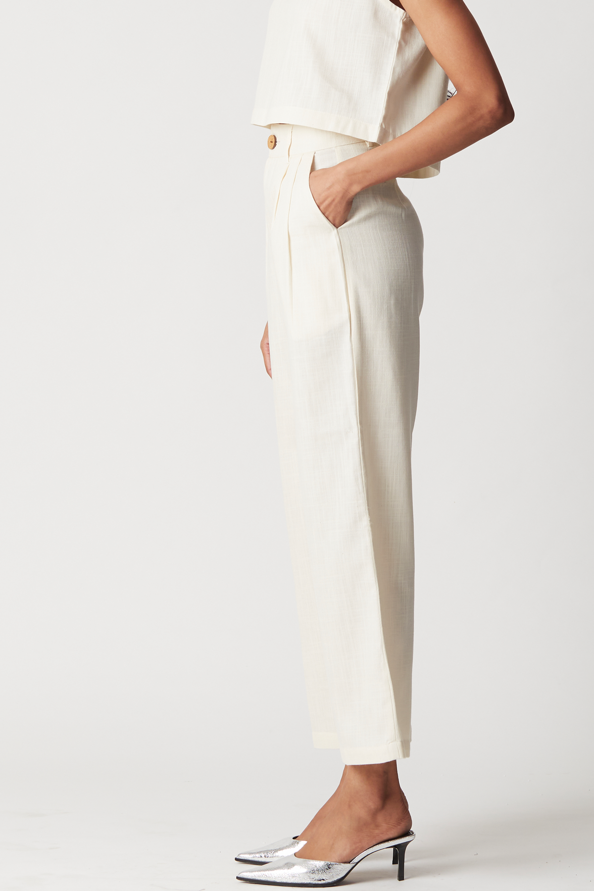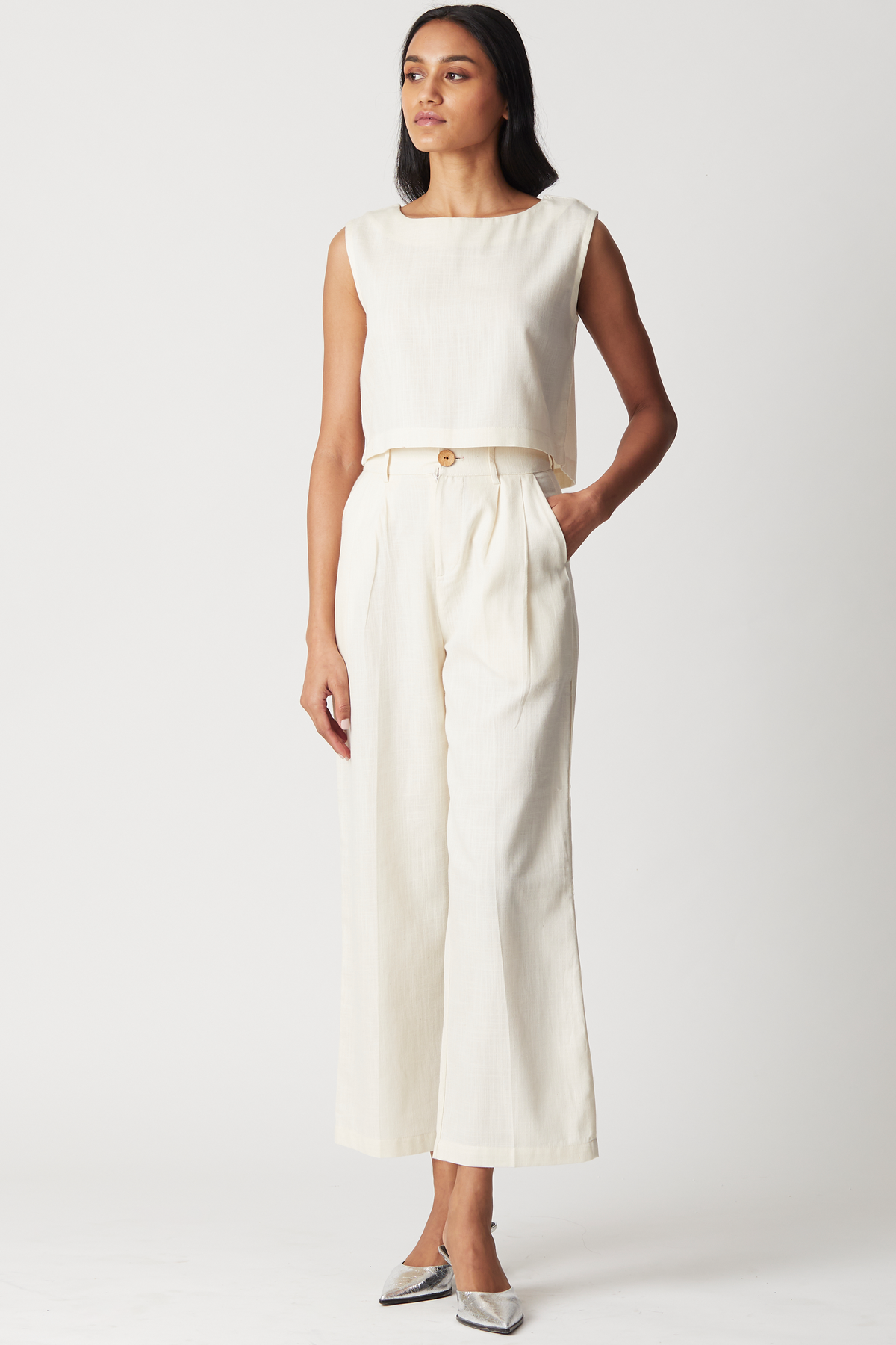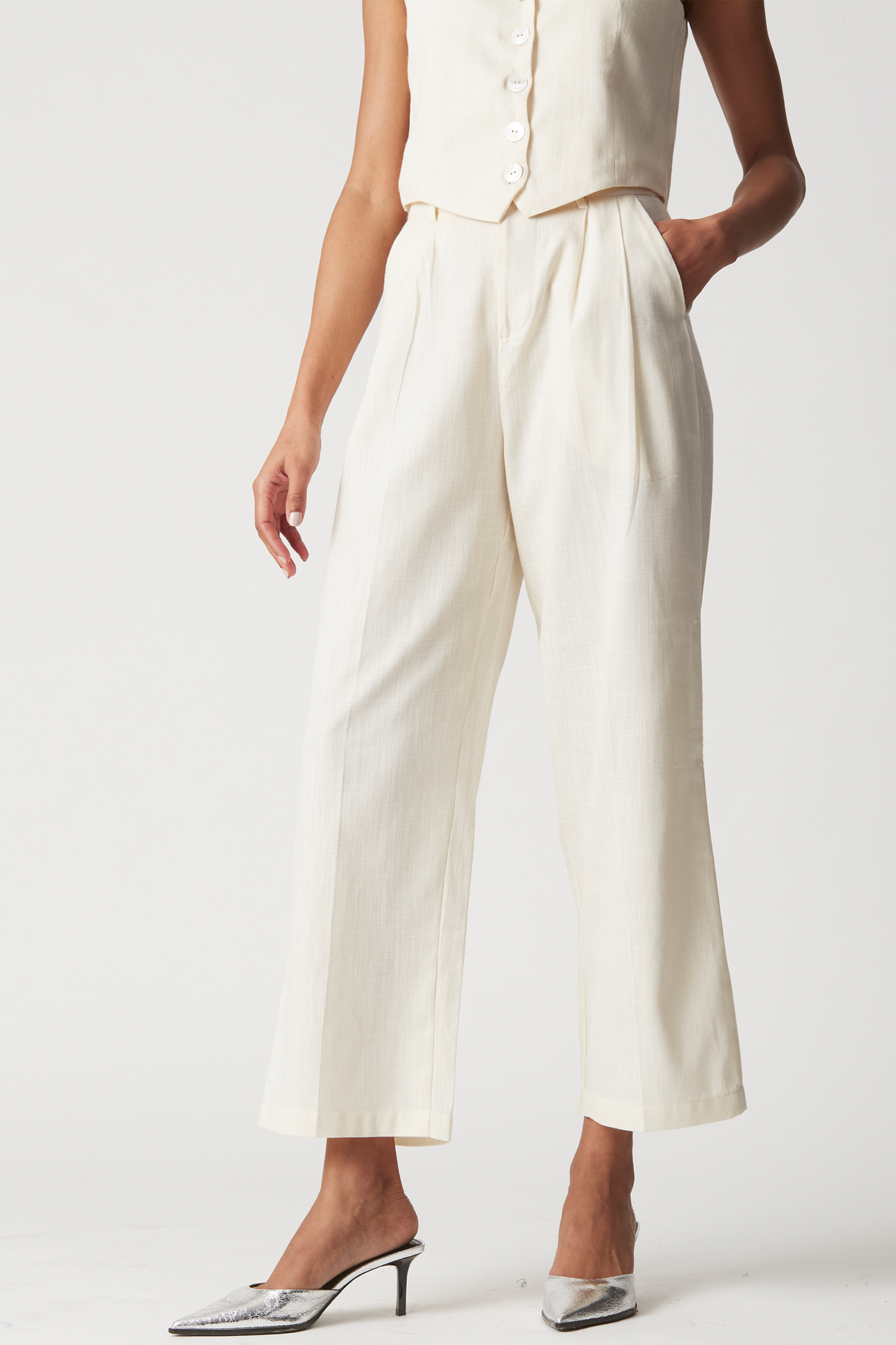Consider these your power trousers. In white, they’re tailored with pleats, a high waist, and a relaxed wide leg that means business (or brunch). Polished enough for meetings, cool enough for cocktails. Pair with heels, flats, or attitude—it’s all the same when you’re running the show.