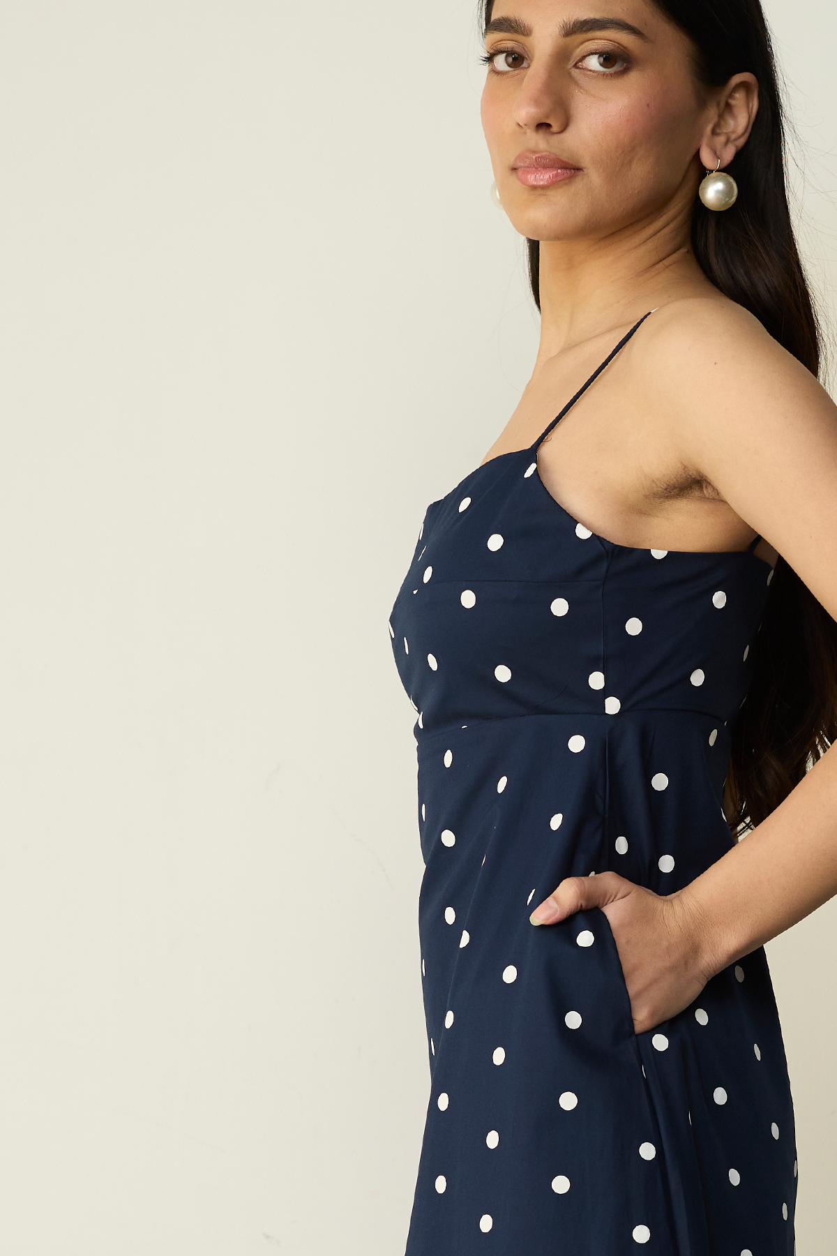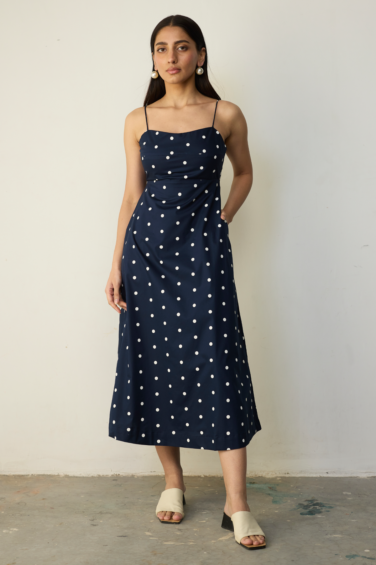 This blue polka-hued beauty has skinny straps, a clean neckline, and a flattering flare that does all the talking. Also, pockets (because obviously). Dress it up, tone it down—she’s versatile like that. Just add confidence, or let the dress bring it for you.