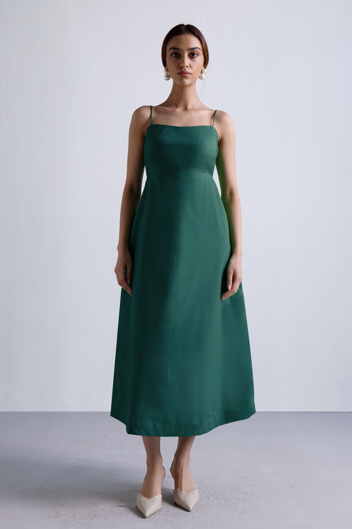 This emerald hued beauty has skinny straps, a clean neckline, and a flattering flare that does all the talking. Also, pockets (because obviously). Dress it up, tone it down—she’s versatile like that. Just add confidence, or let the dress bring it for you.