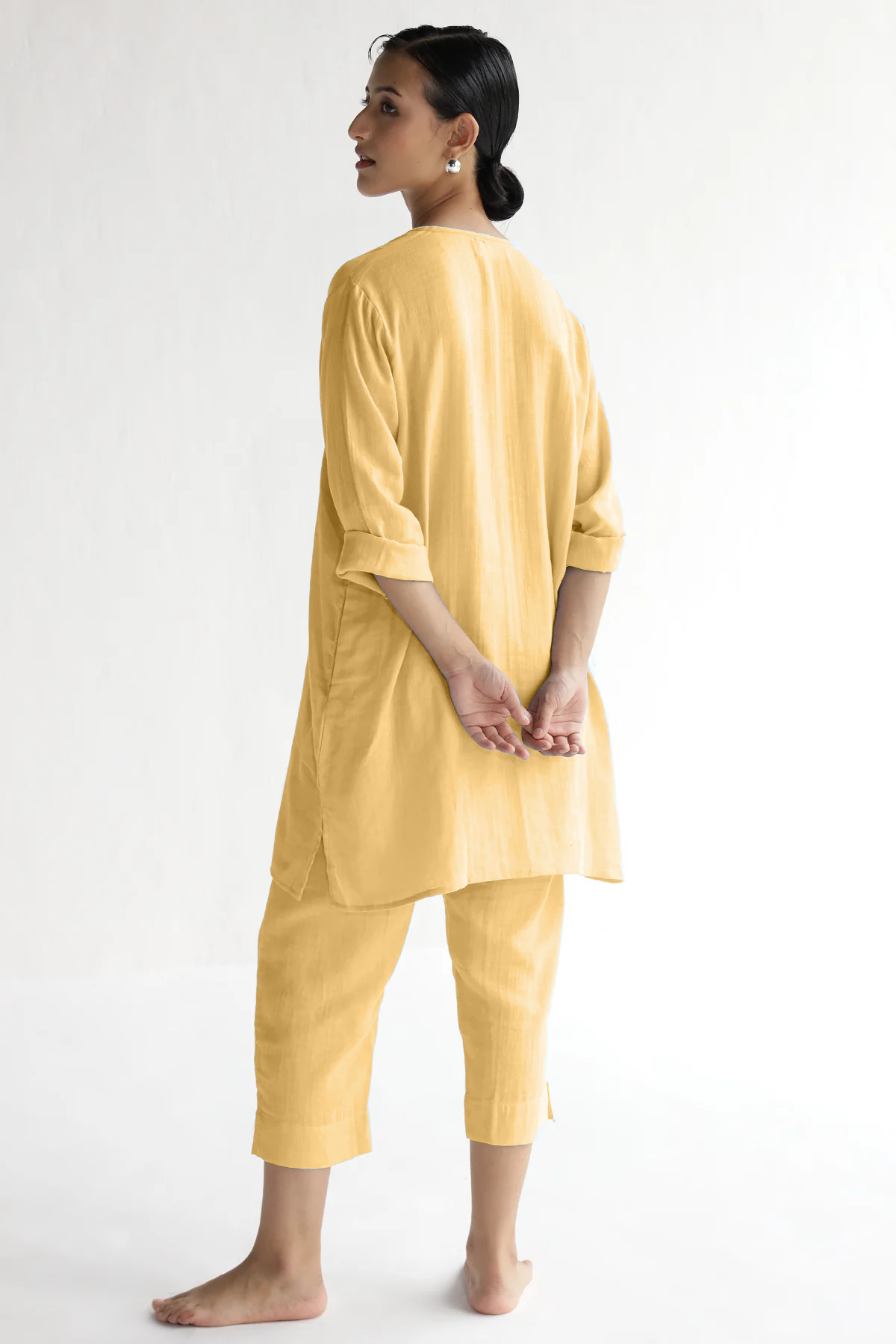 This co-ord is basically your OOO mood (Out Of Office) in outfit form. Made from breathable linen in a mood-lifting blue, it’s got rolled sleeves, real pockets, and an attitude that says “I have plans… to chill.” Perfect for errands, inbox-ignoring, or spontaneous long lunches.