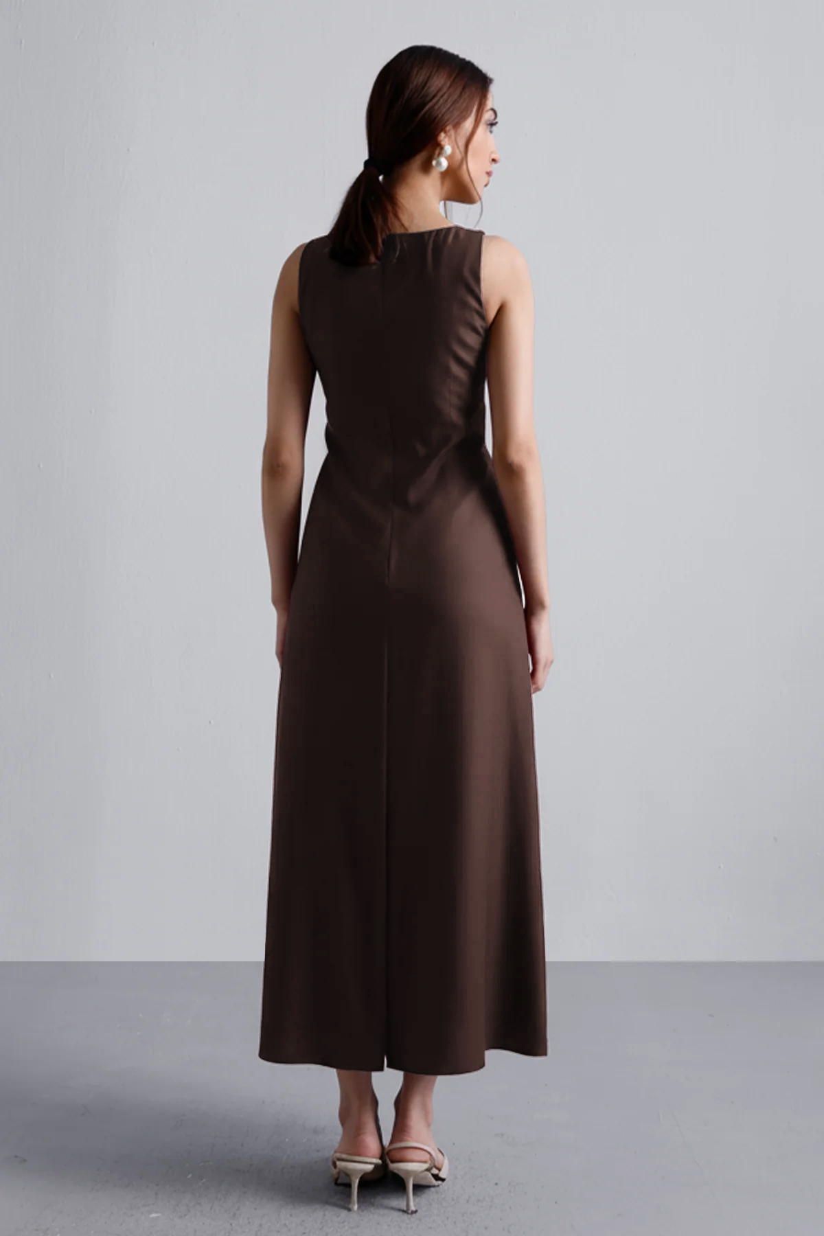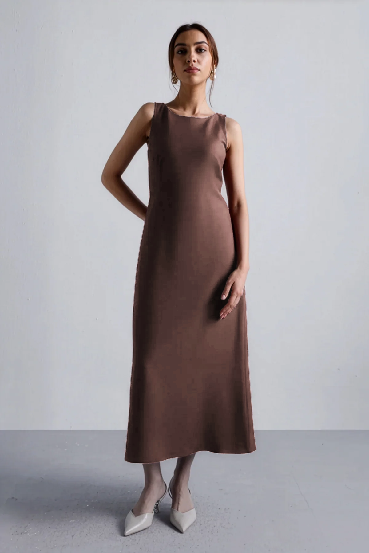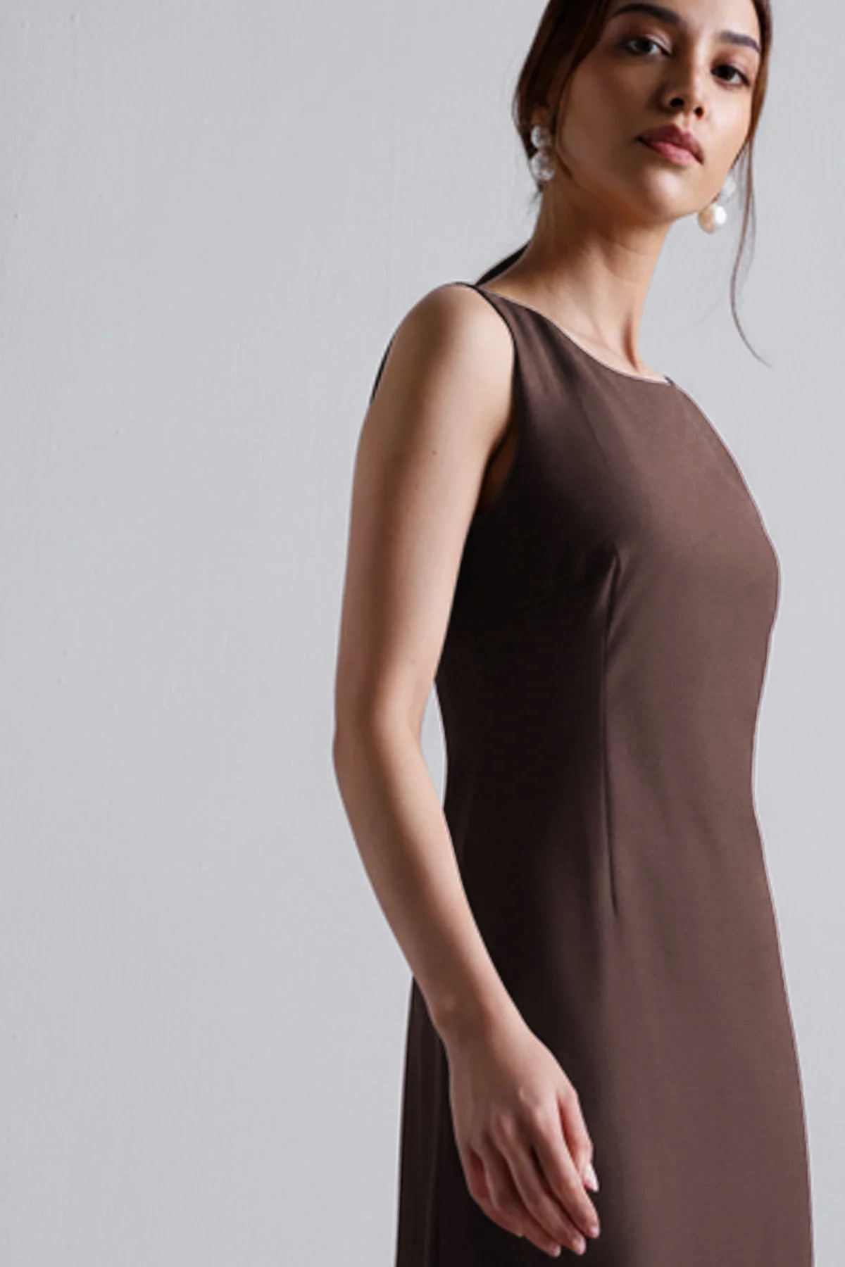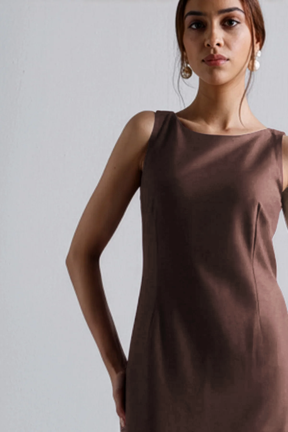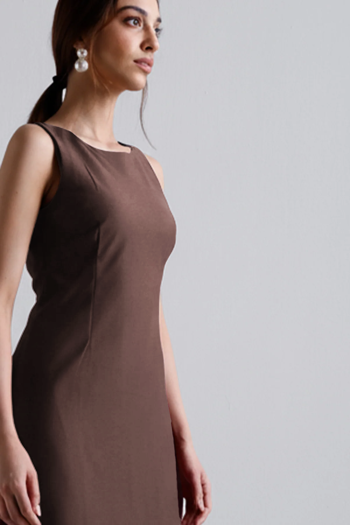 Meet your new power move in dress form. This sleeveless cocoa midi sculpts just right—clean lines, no fuss, and a fit that says “I didn’t come to play.” Perfect for dinner dates, boardrooms, or wherever you feel like owning the room. Just add earrings and an agenda.