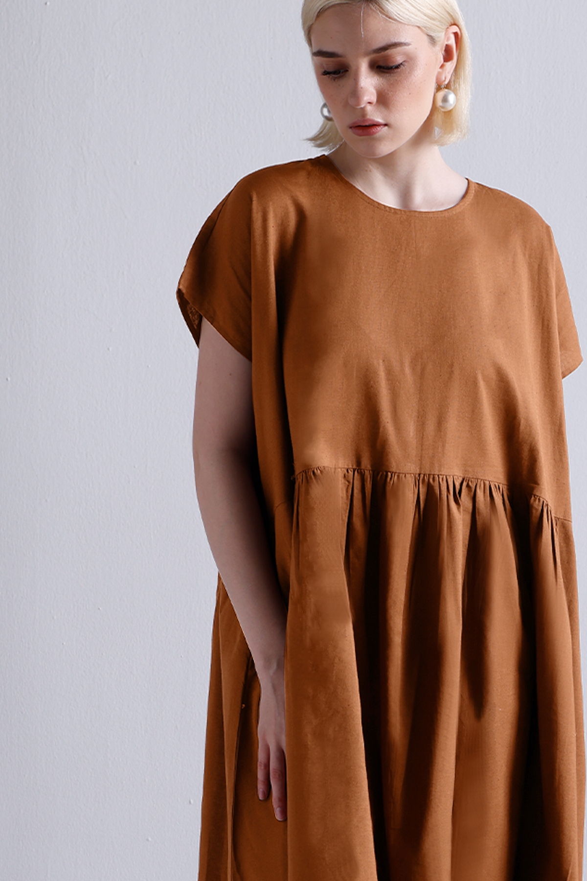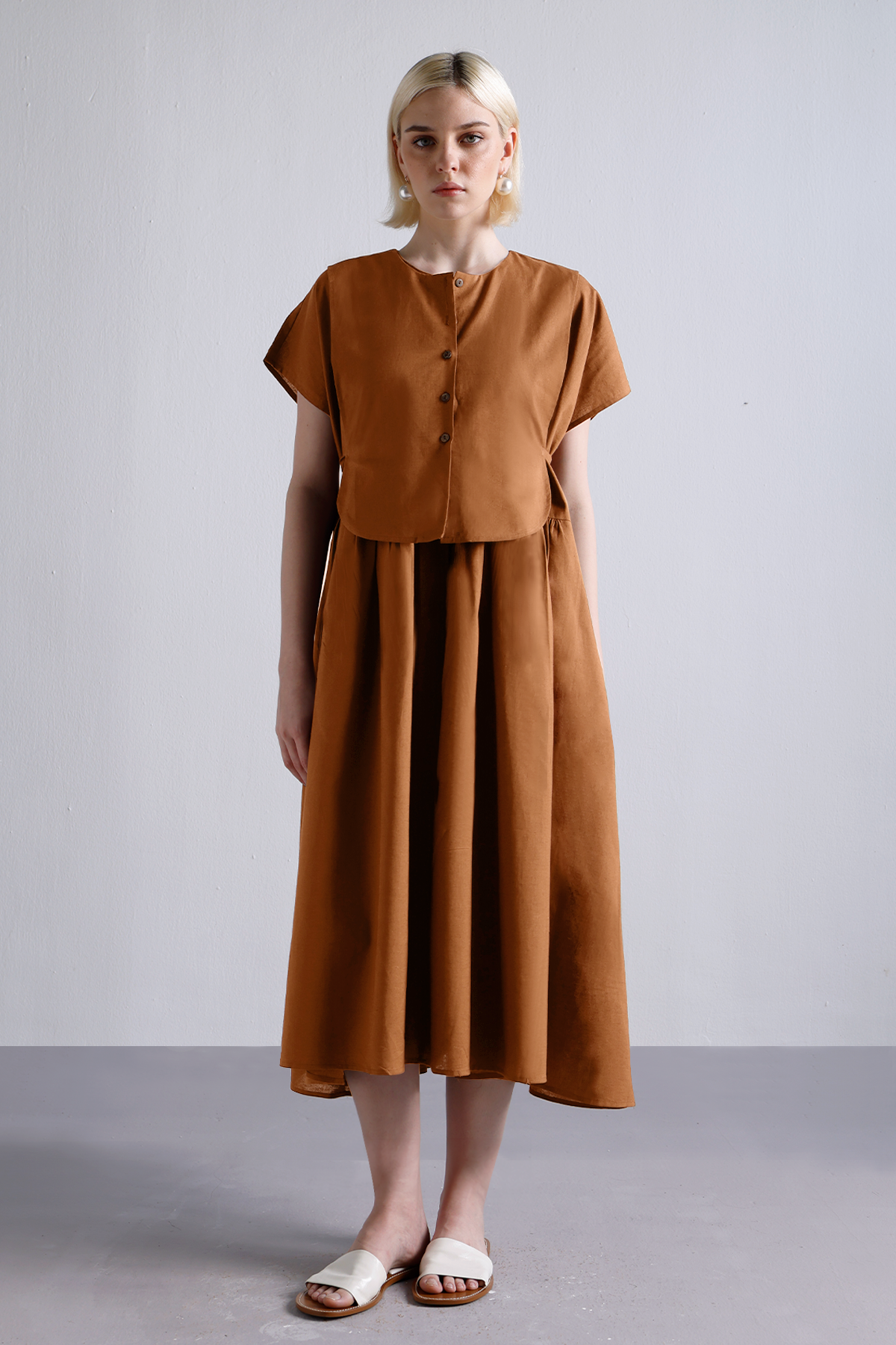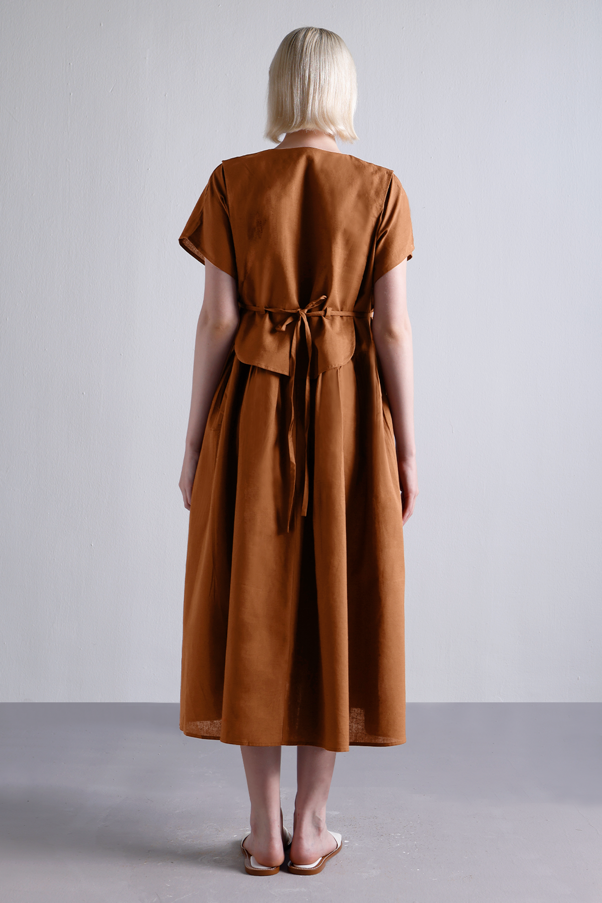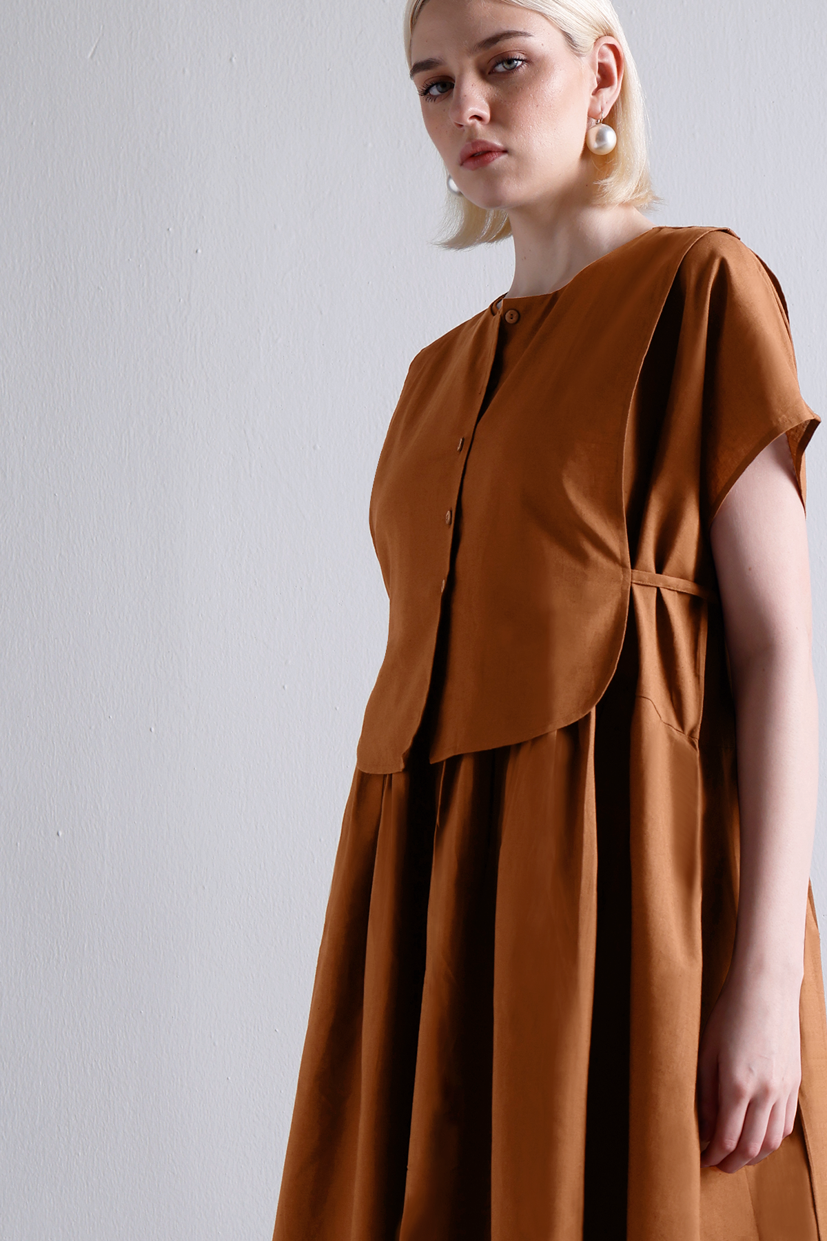 Built-in polish, zero styling effort. This Sienna midi dress features a mock-layer overlay, soft gathers, and a tie-back detail that flatters from all angles. It's giving: graceful, grounded, and totally in charge. Bonus? It goes with your favorite flats and your favorite excuses to cancel plans.